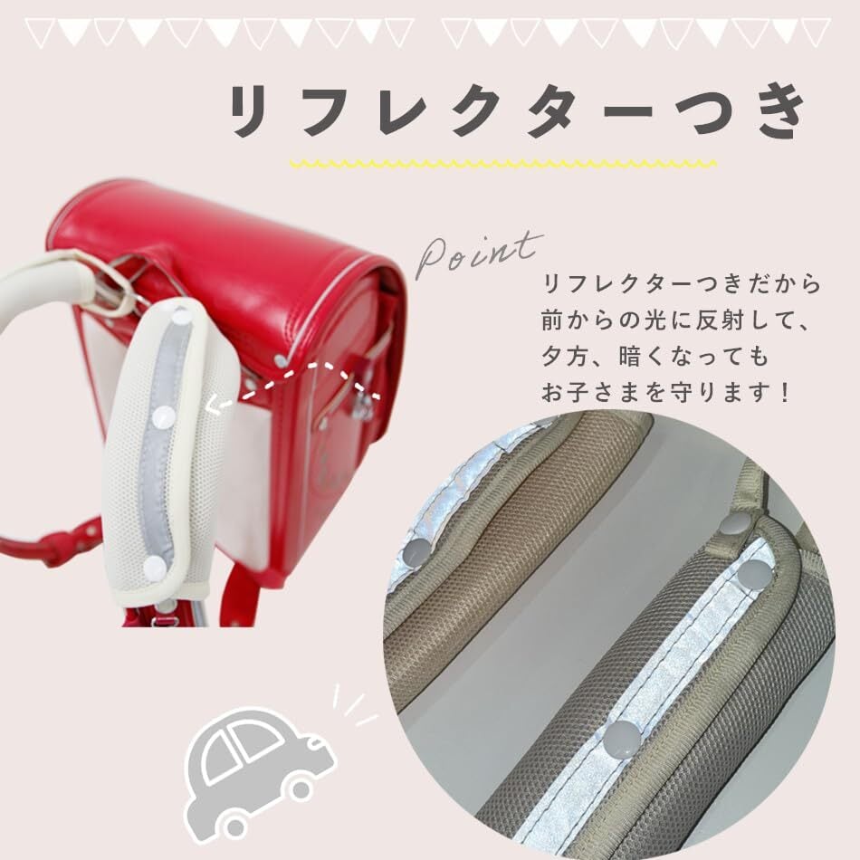【使用可能なランドセル】ランドセル肩ベルト幅が6㎝以下のもの推奨、本製品上の固定紐が通せるランドセル。