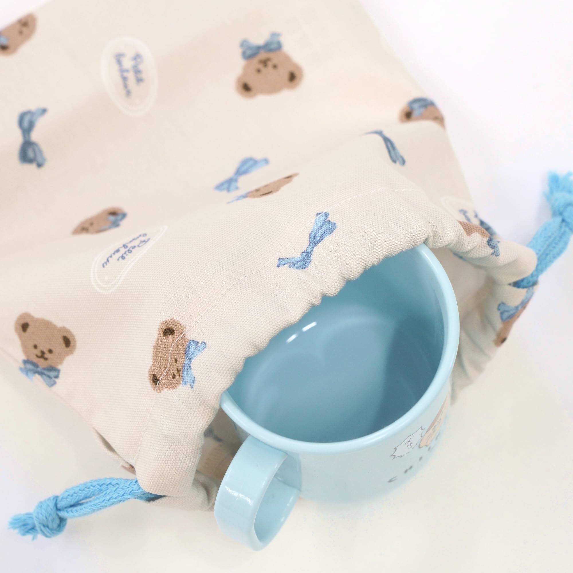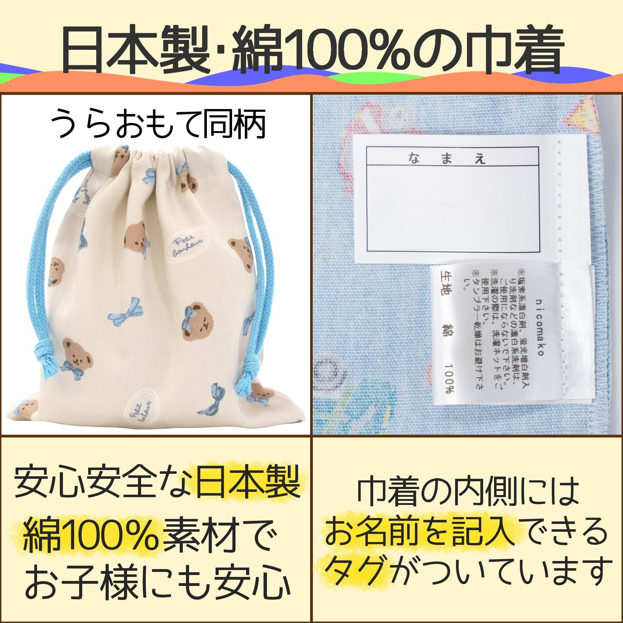 【特価セール】小さめ 巾着袋 巾着 小 コップ袋 歯ブラシ 日本製 保育園 小学生 子供 キッズ 女の子 きんちゃく S クマ ベージュ