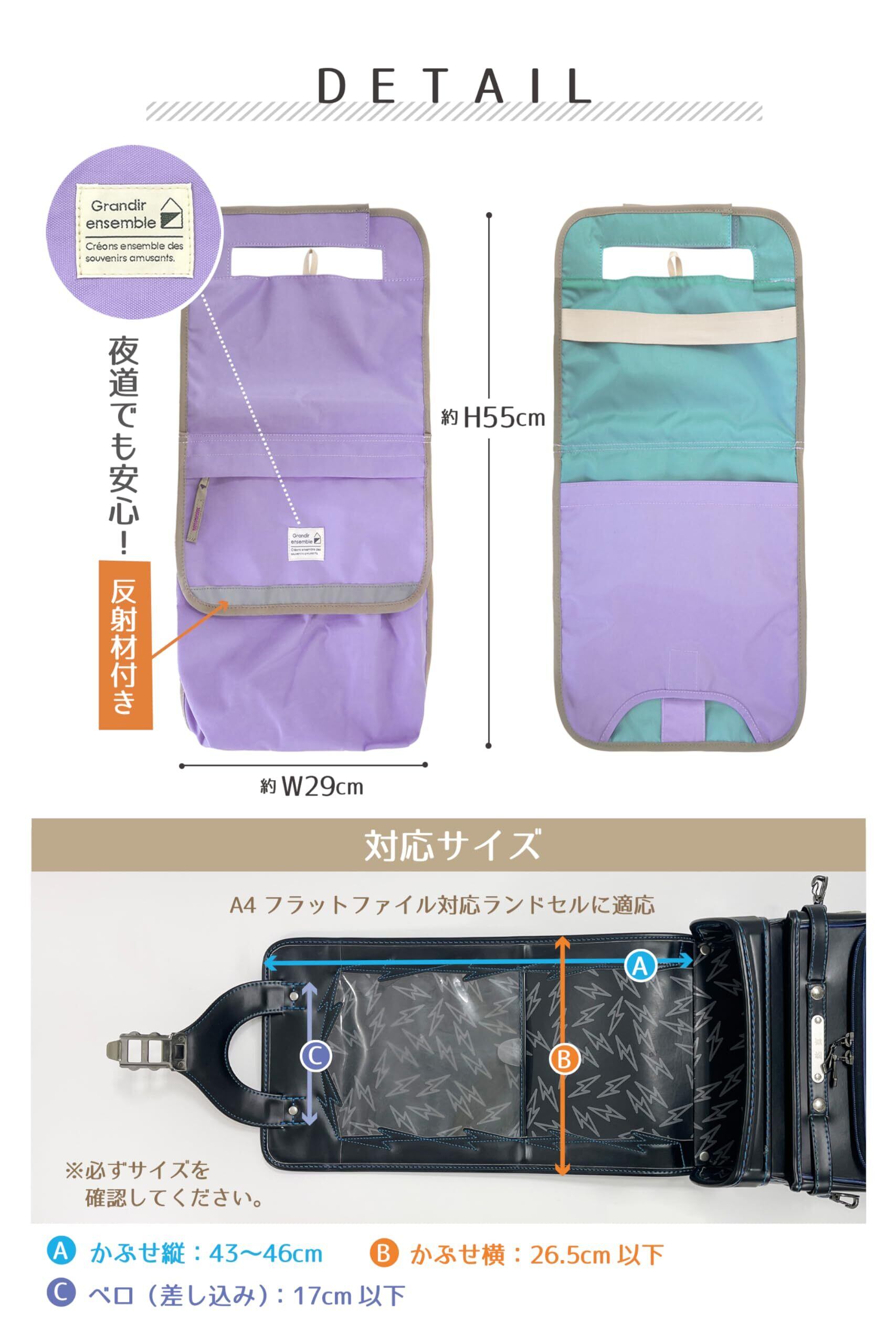 [Grandir ensembie] ランドセル カバー 【 KIDS ランドセルカバー 】 収納 補助バッグ ポーチ ( ポケット付き レインカバー ) 雨 男の子 女の子