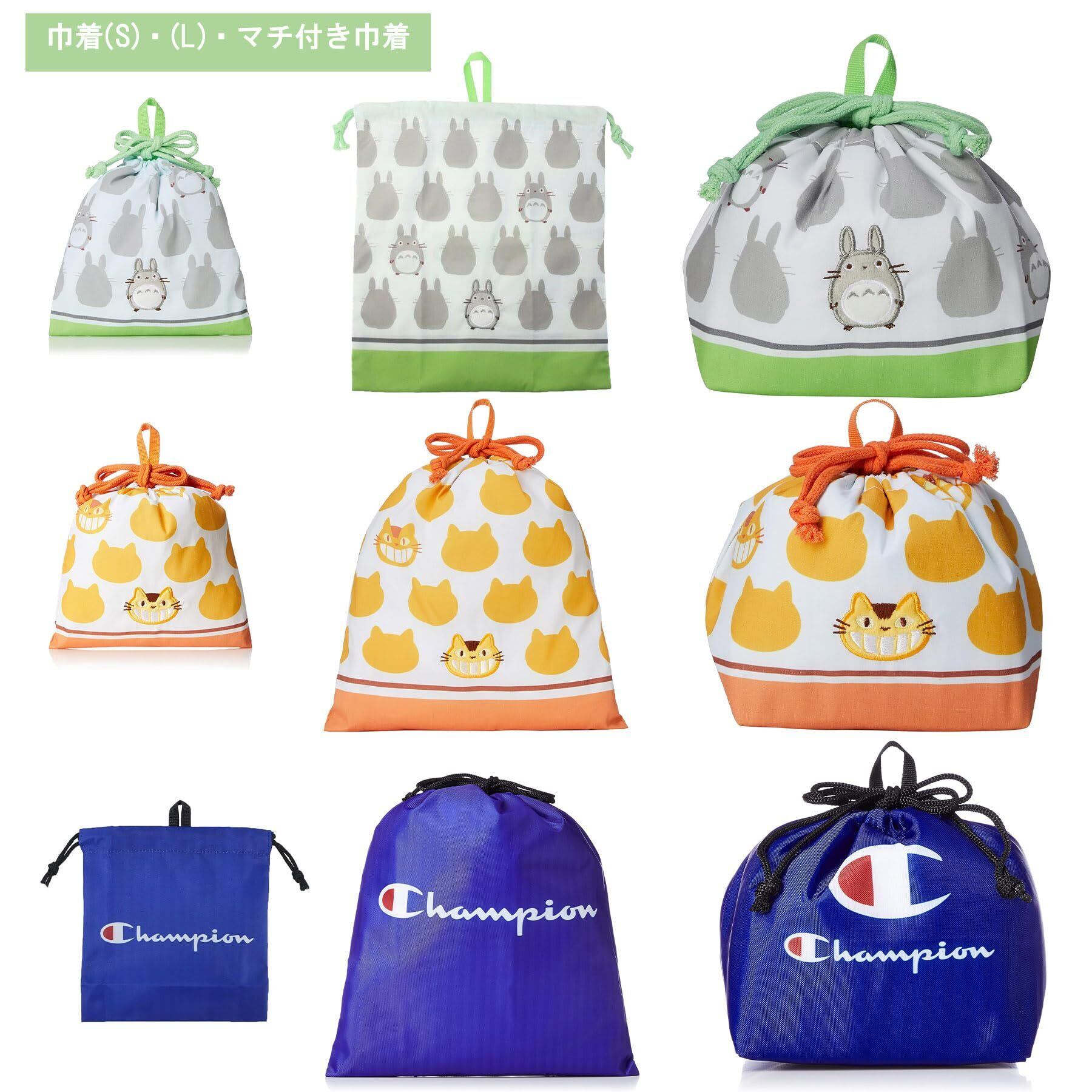 サイズ:H35×W31cm / 生産国:中国 組成:ポリエステル100% / 仕様:巾着(S)(L):転写プリント・ファーアップリケ刺繡・抗菌防臭加工 マチ付き巾着:アルミ生地(中身) 体操服や着替えを入れるのに便利な大きめ巾着