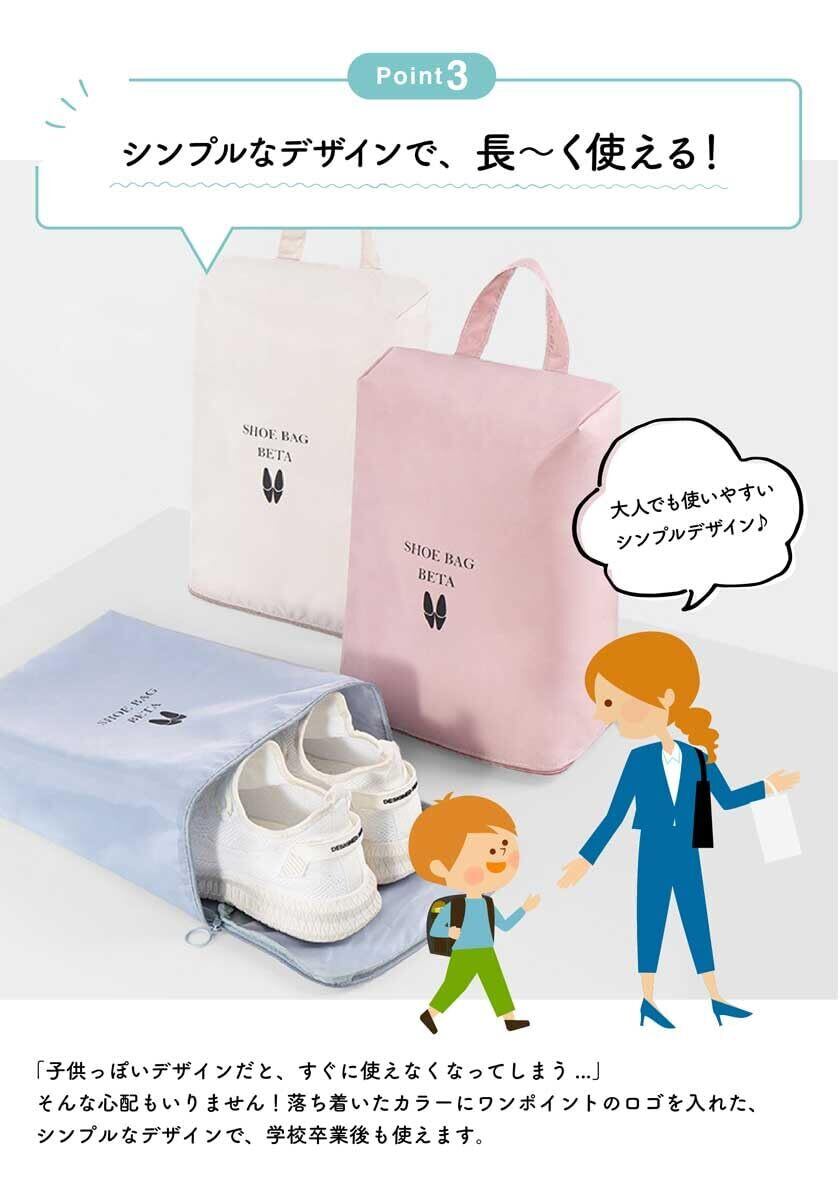 【サイズ展開】 サイズ展開が豊富で、保育園・幼稚園から小学生の高学年のお子様まで広くご使用いただけます。子どもの上履きや運動靴、または体育館シューズまでしっかり入り、マチ付きなので無理なく収納できて出し入れもスムーズです。