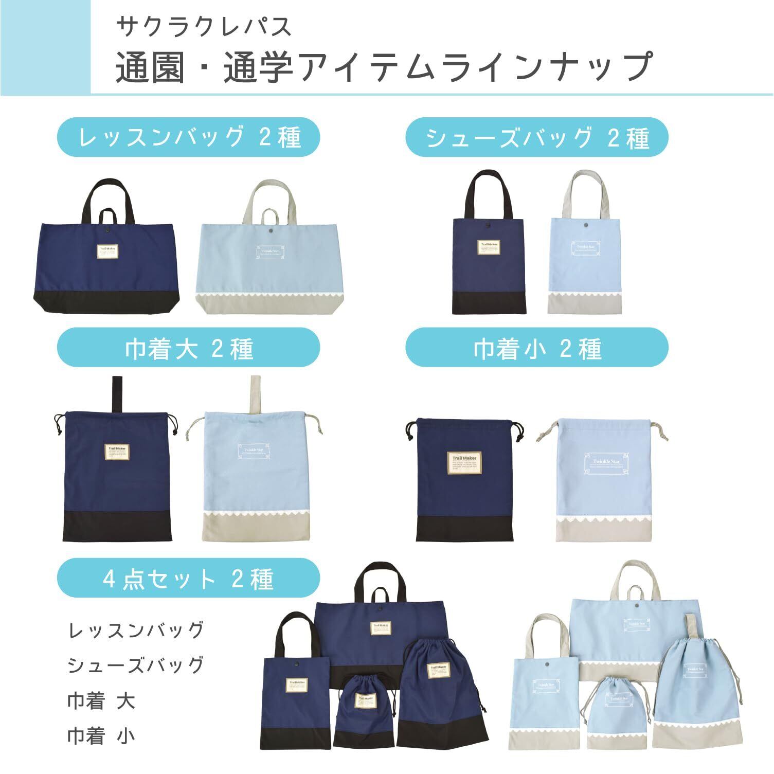[SAKURA] サクラクレパス 通園 通学 小学生 レッスンバッグ 巾着袋 体操着袋 コップ袋 A1#38