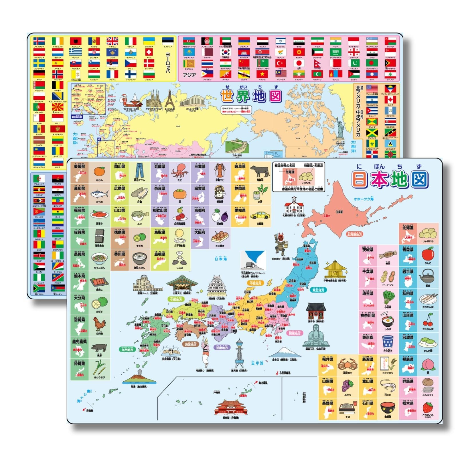 【現役塾講師監修】 お風呂ポスター モンテッソーリ 知育 見て聞いて遊んで定着 2枚セット B3サイズ (世界地図・日本地図)