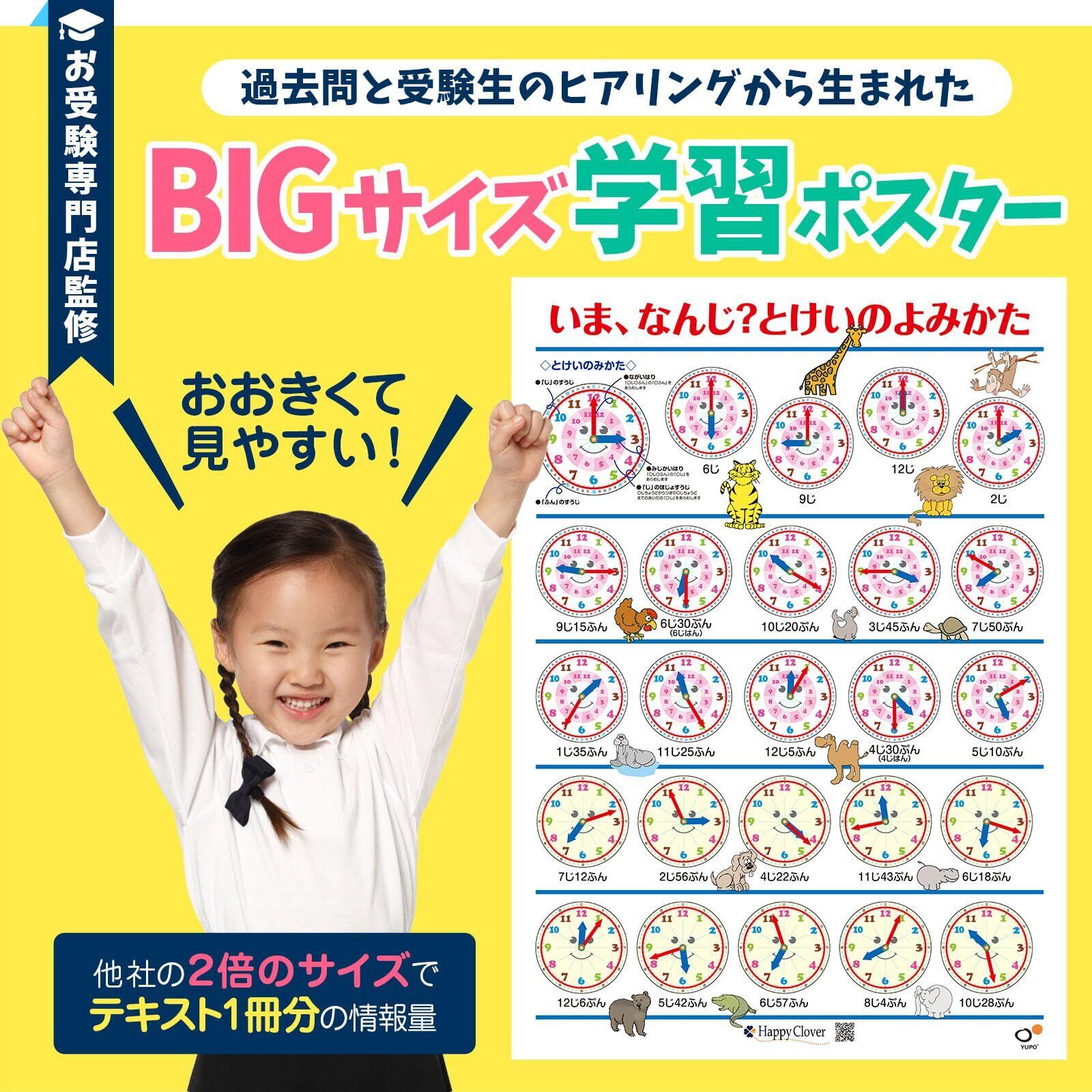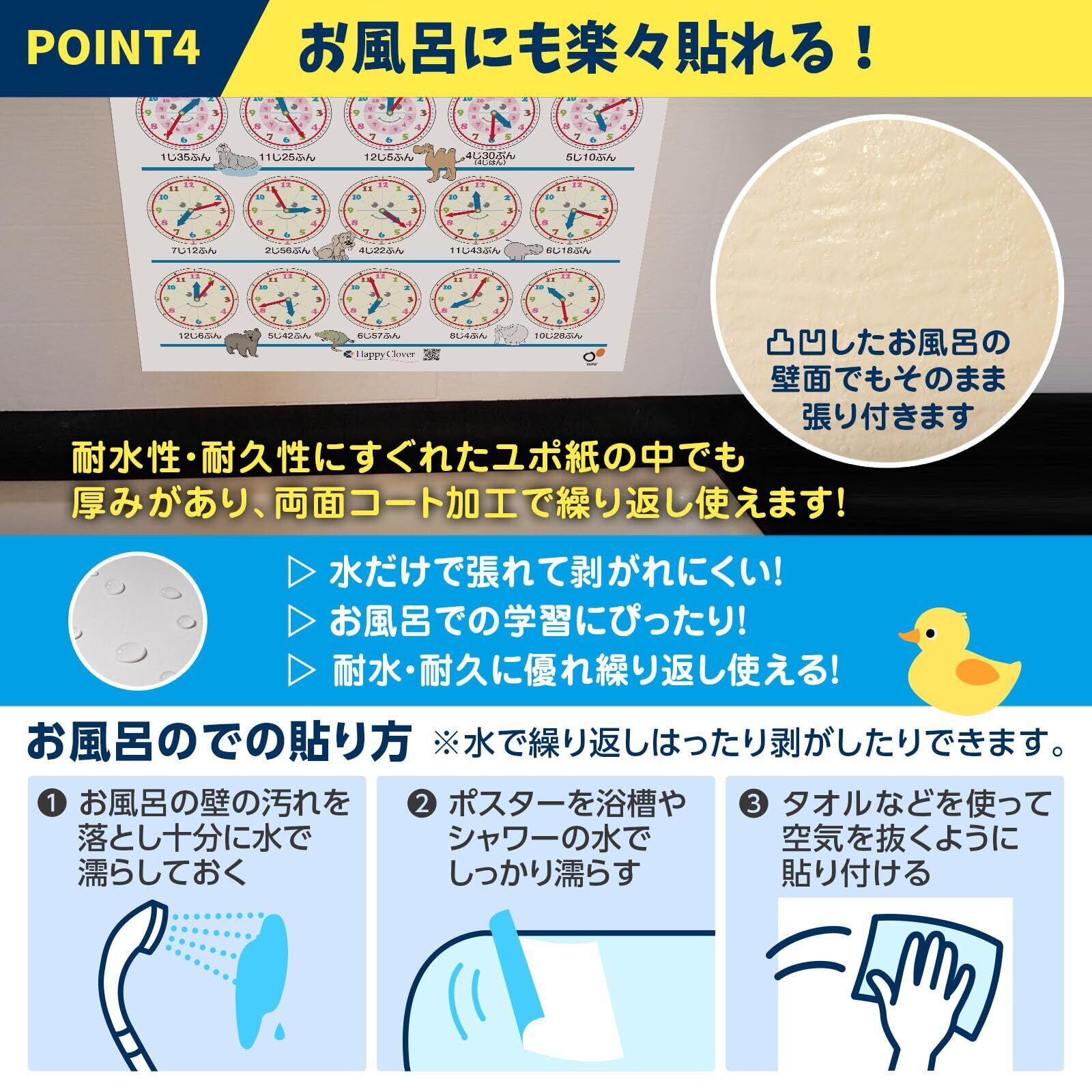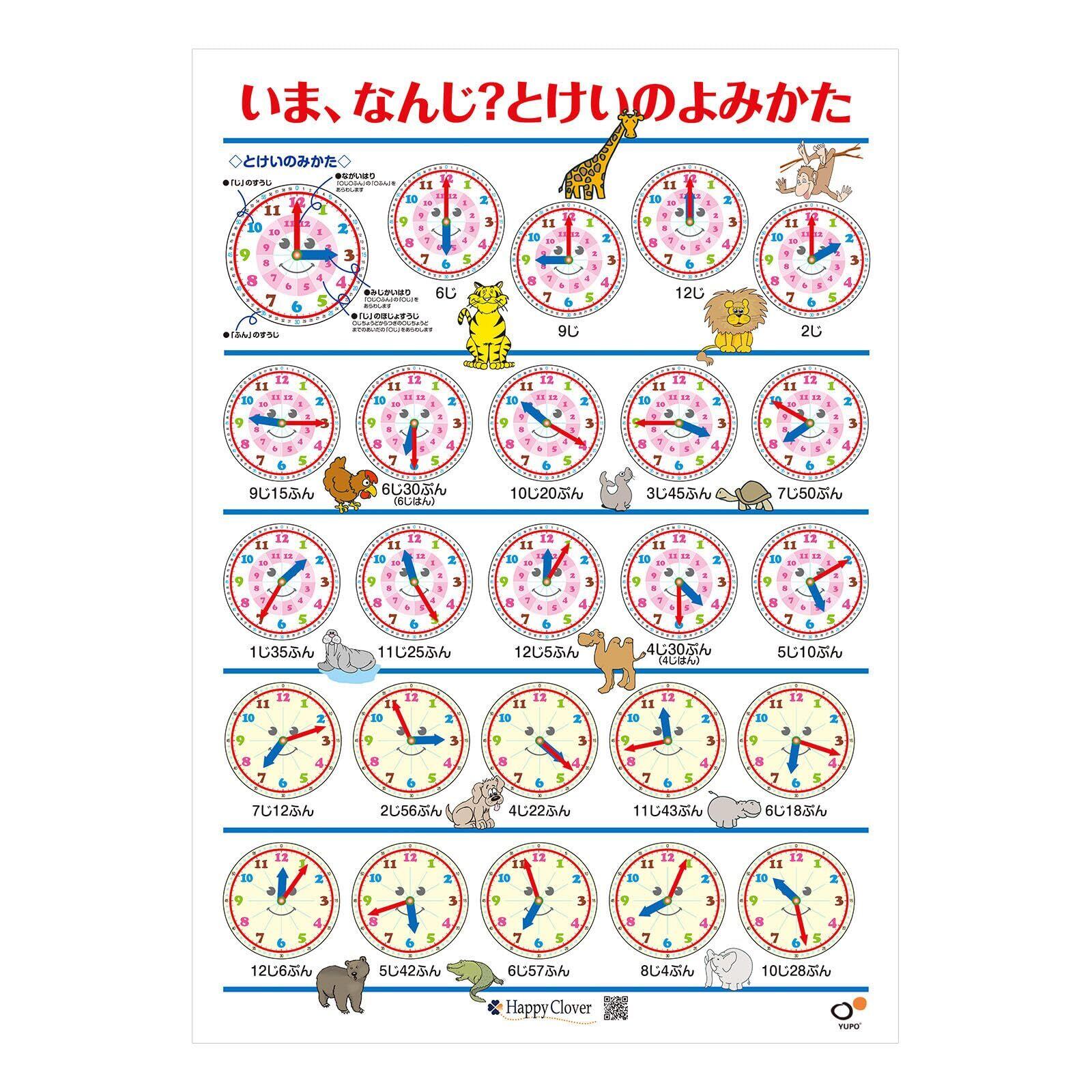 ハッピークローバー お風呂で幼児教室 とけいのよみかたポスター お受験教材 時計の読み方 アナログ時計 B2サイズ 知育 日本製 安心安全 お風呂ポスター 小学校受験準備 お風呂に貼れる 防水 ポスター お風呂 対象年齢:3歳以上