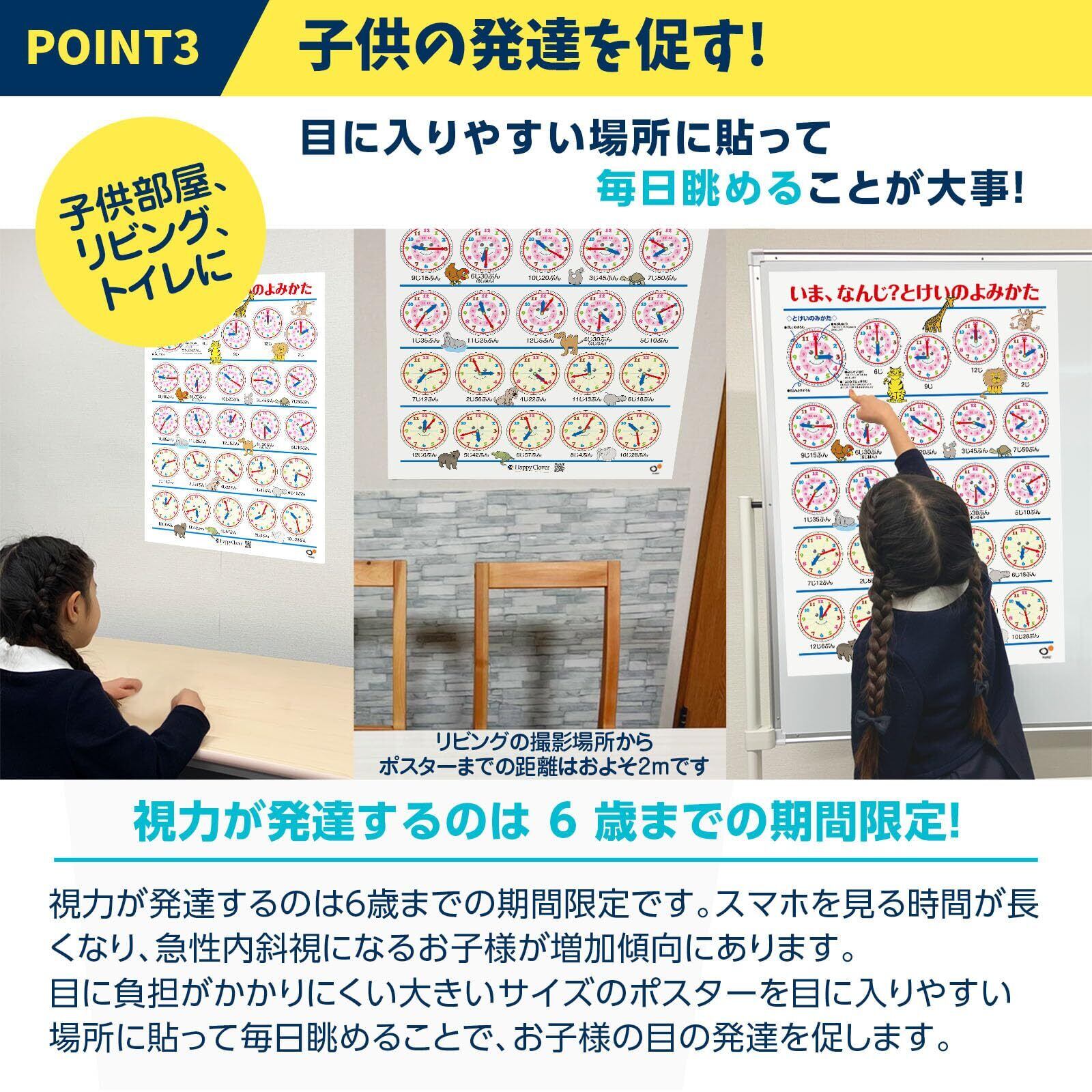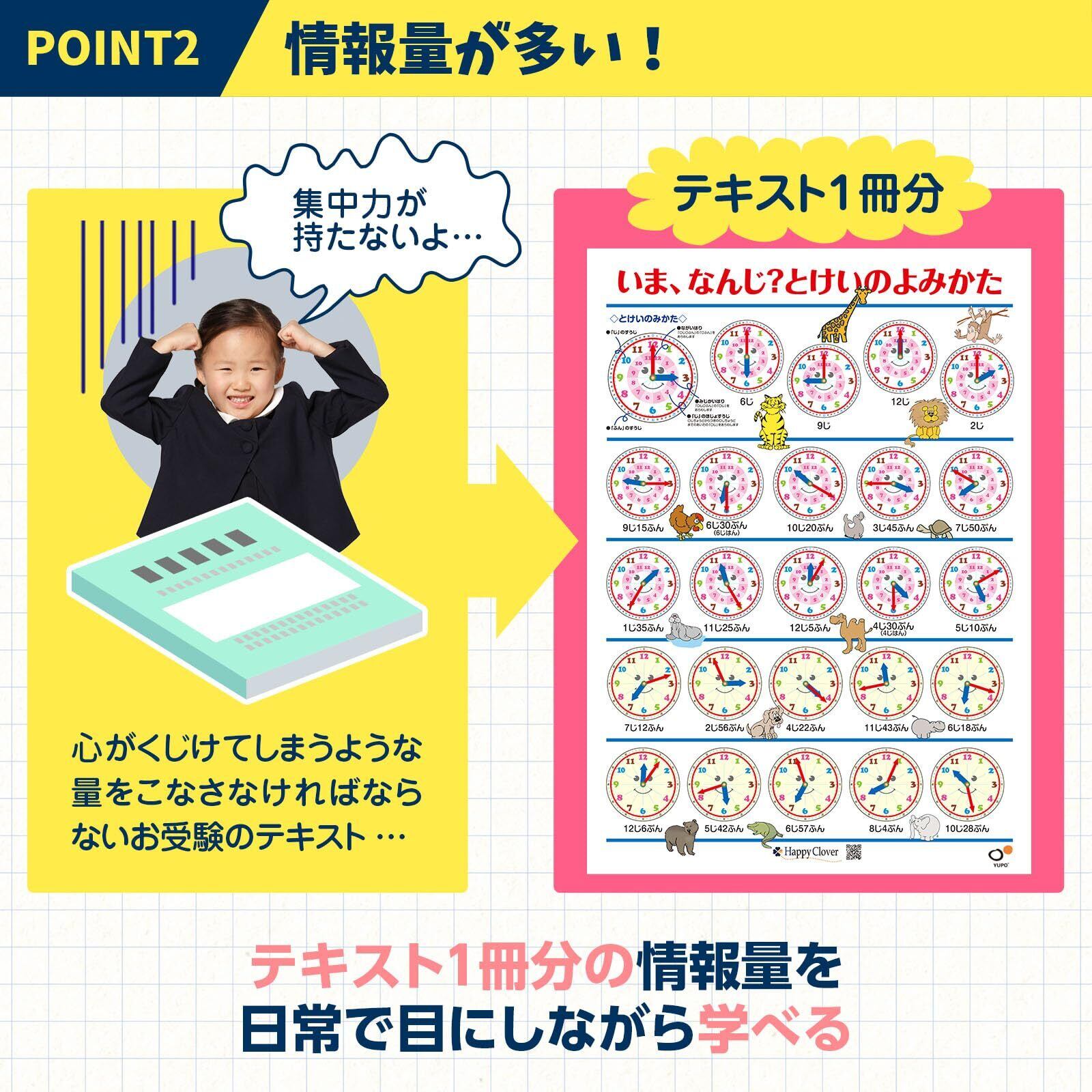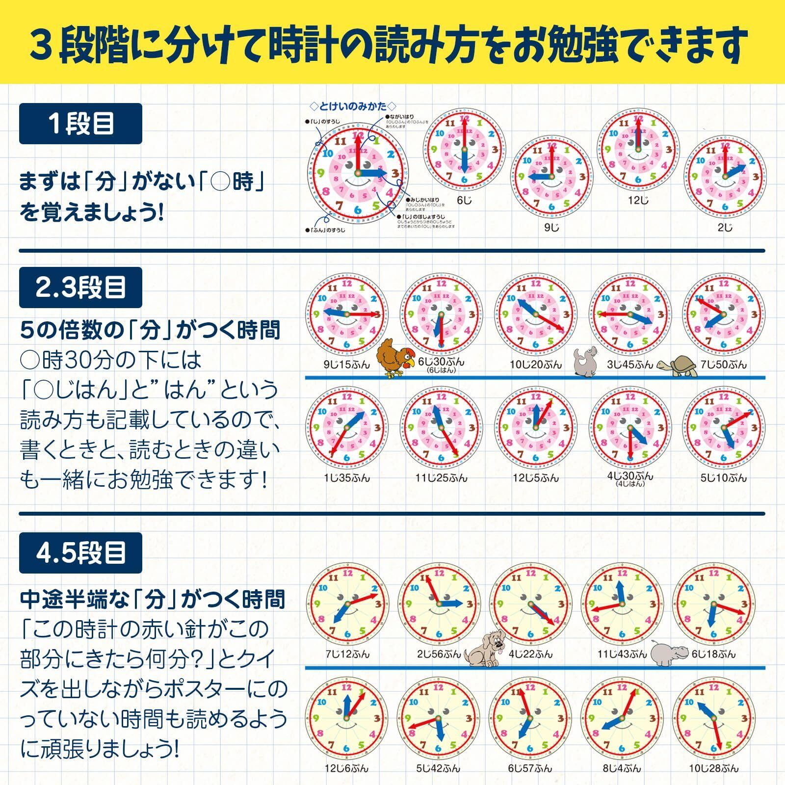 ハッピークローバー お風呂で幼児教室 とけいのよみかたポスター お受験教材 時計の読み方 アナログ時計 B2サイズ 知育 日本製 安心安全 お風呂ポスター 小学校受験準備 お風呂に貼れる 防水 ポスター お風呂 対象年齢:3歳以上