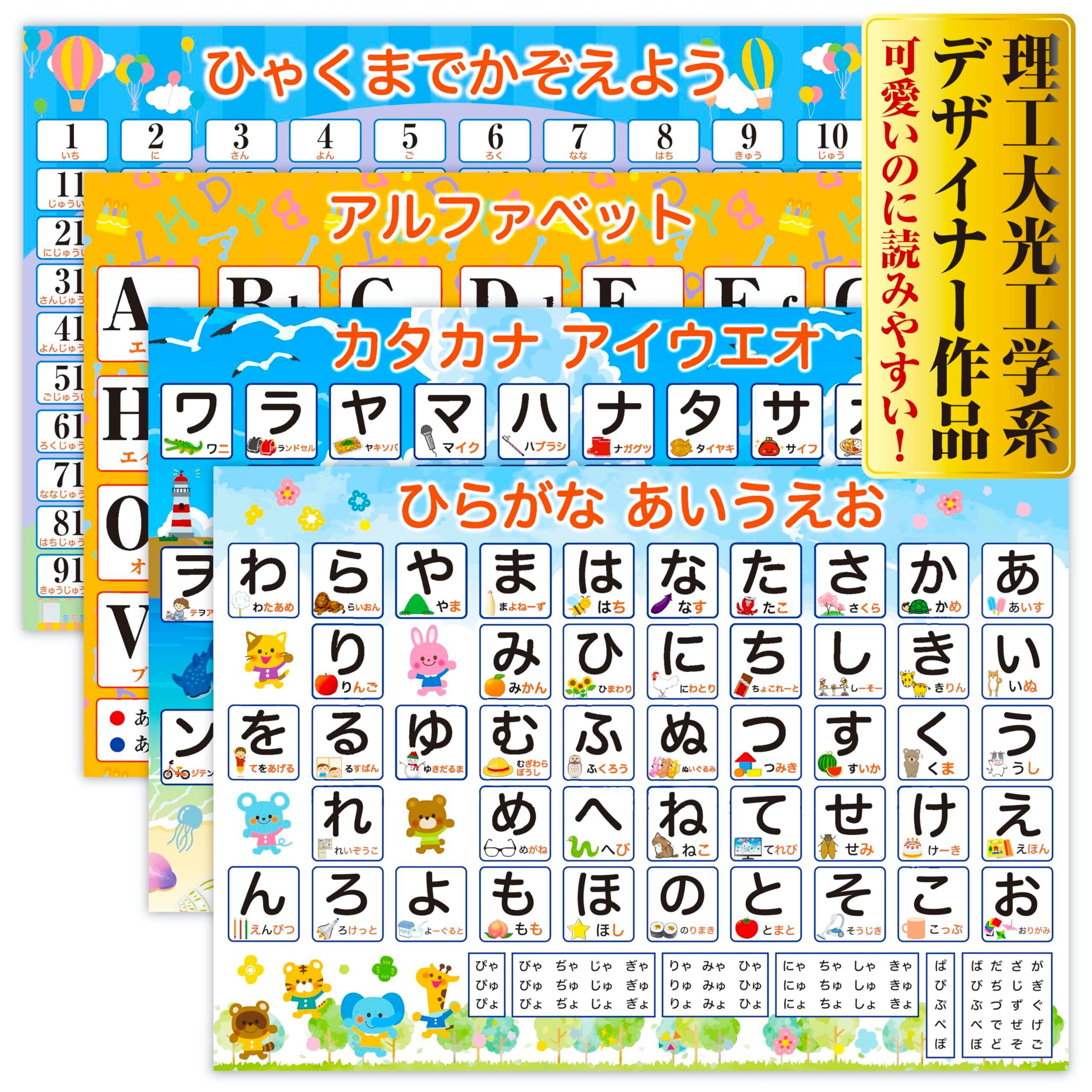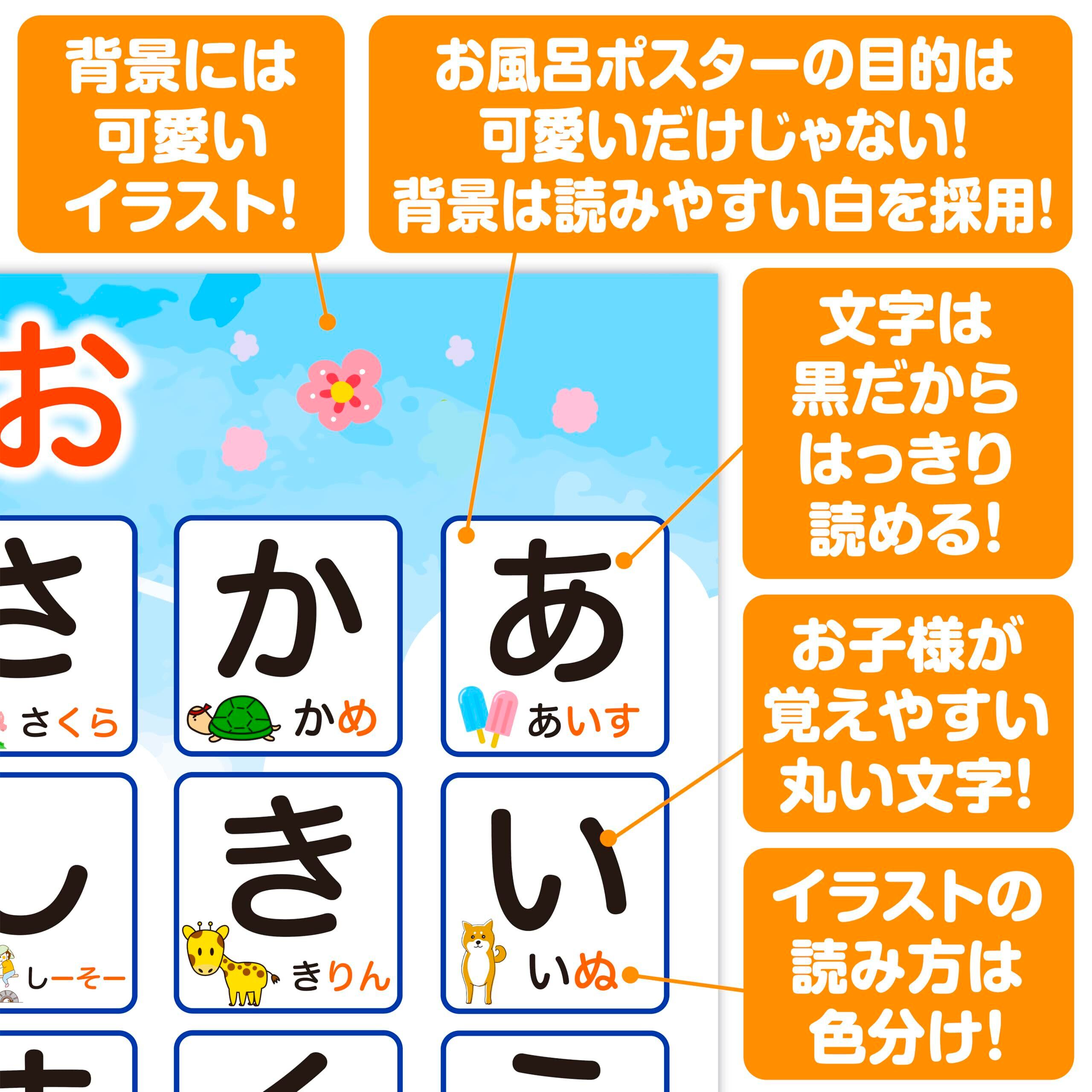 ジーニアス先生のお風呂塾 お風呂ポスター 4枚セット B3サイズ ひらがな・カタカナ・数字100・アルファベット しりとり 知育 お受験 玩具 おもちゃ 知育玩具