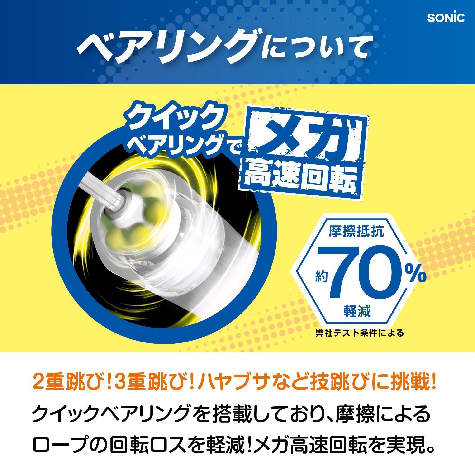 クイックベアリングを搭載したなわとび。摩擦によるロープの回転ロスを軽減、メガ高速回転を実現。