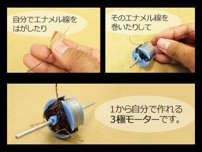 3極モーターの回る仕組みがよく理解でき、 いろいろなものの動力源として利用できます。