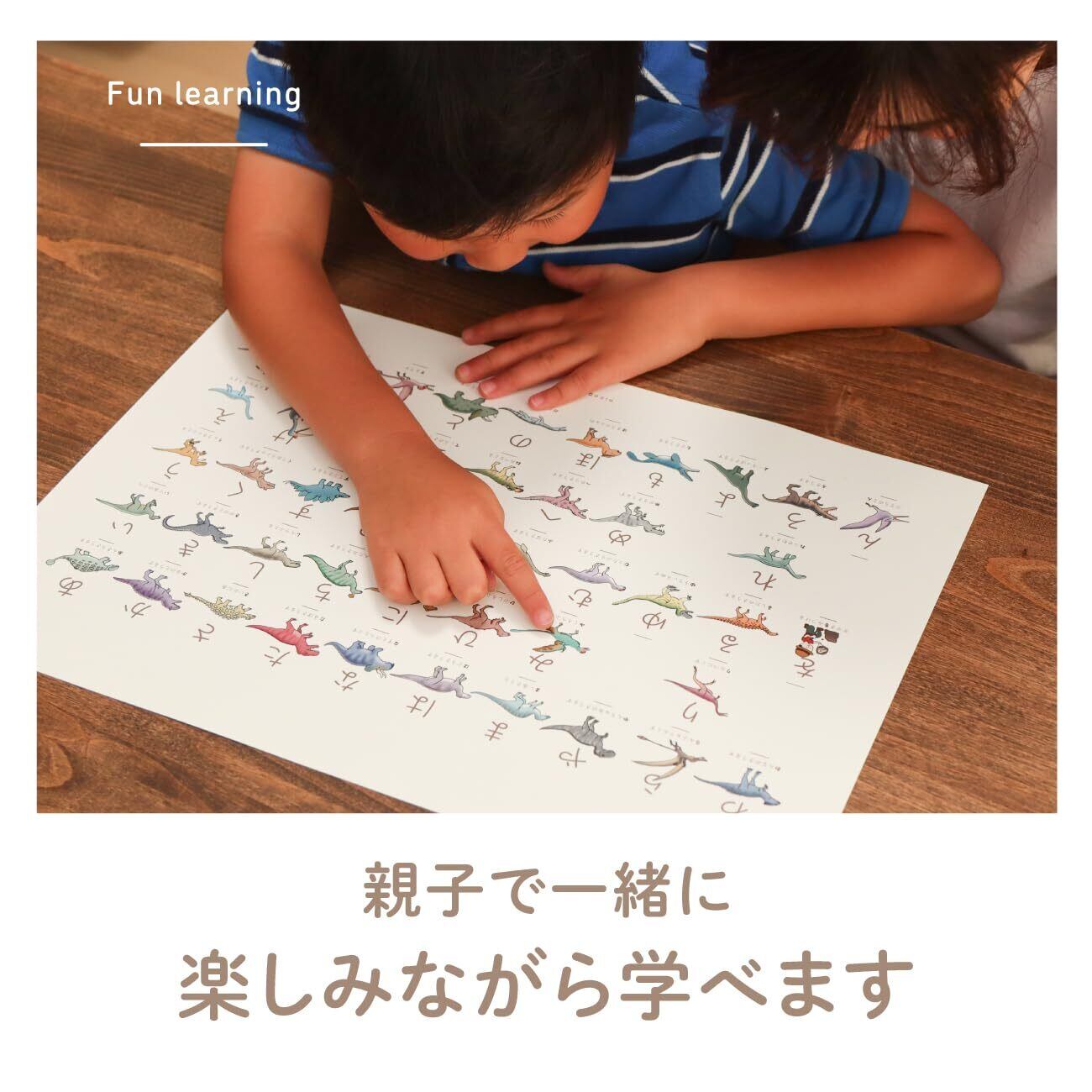 「好き」の熱量が、最高の学びになる!! 恐竜が大好きなお子様に贈る、知的好奇心を刺激する「あいうえお表」です。 「大好きな恐竜なら、自分から進んで名前を覚えるのに…」 そんなお子様の「興味」を、ひらがな学習のきっかけに変えてみませんか? 「こだわりあいうえお」シリーズは、特定の分野に強い興味を持つお子様に寄り添う、特別な学習ポスターです。 このポスターの「こだわり」ポイント 1. 恐竜図鑑さながらのマニアックな選定 アンキロサウルスからプテラノドンまで、独自のラインナップが恐竜好きのお子様の心を掴みます。一文字一文字、恐竜たちの質感や特徴を丁寧に表現したこだわりの描き下ろしイラストは、図鑑のようなリアルさとインテリアを邪魔しない優しいタッチを両立させました。 2. 学校で習う「正しい字形」への徹底したこだわり 初めて文字に触れる時期だからこそ、フォント選びにも妥協していません。 文部科学省の学習指導要領に準拠:教科書と同じ「ハネ・ハライ」を正しく学べるデザインです。ユニバーサルデザイン(UD)の第一人者の協力で開発された、読み間違いの少ない書体を採用。 すべてのお子様に読みやすさを:視認性が高く、弱視のお子様や文字学習を始めたばかりのお子様にも優しい設計です。 3. お風呂の時間を「探究の時間」に変える魔法のシート 水で濡らすだけで壁に貼れる「ユポ紙(防水)」を使用。破れにくく丈夫な素材なので、毎日のお風呂で安心してお使いいただけます。 「これ知ってる!」「これはなんていう恐竜?」と、親子で会話を楽しみながら、自然とひらがなに親しむことができます。 こんなシーンにおすすめ! ひらがな練習を始めたばかりのお子様へ。 恐竜が大好きで、知識欲が旺盛な子へのギフトに。 入園・入学祝いの、少し変わったセンスの良いプレゼントとして。 知育玩具にも「デザイン性」と「こだわり」を求めたい方に。 お子様の「こだわり」は、素晴らしい才能の原石です。 このポスターが、新しい言葉や知識の世界へ飛び込む、最初の一歩になりますように。