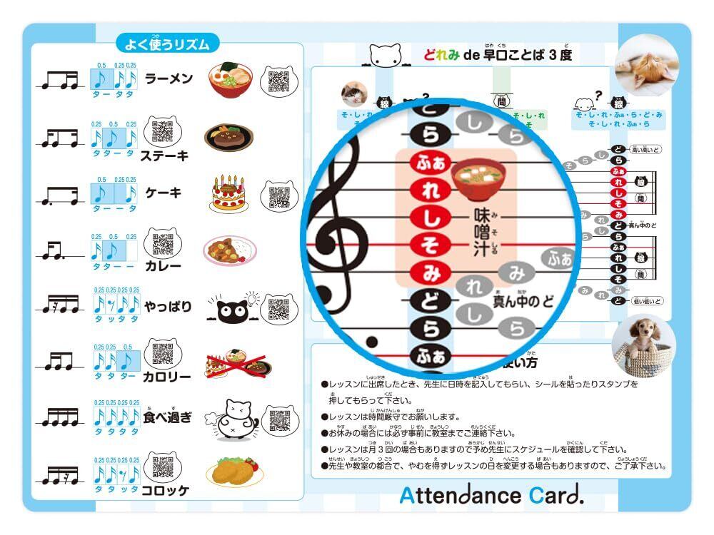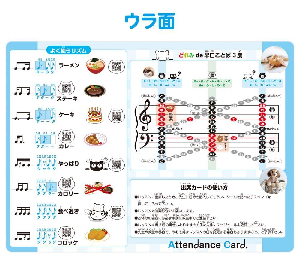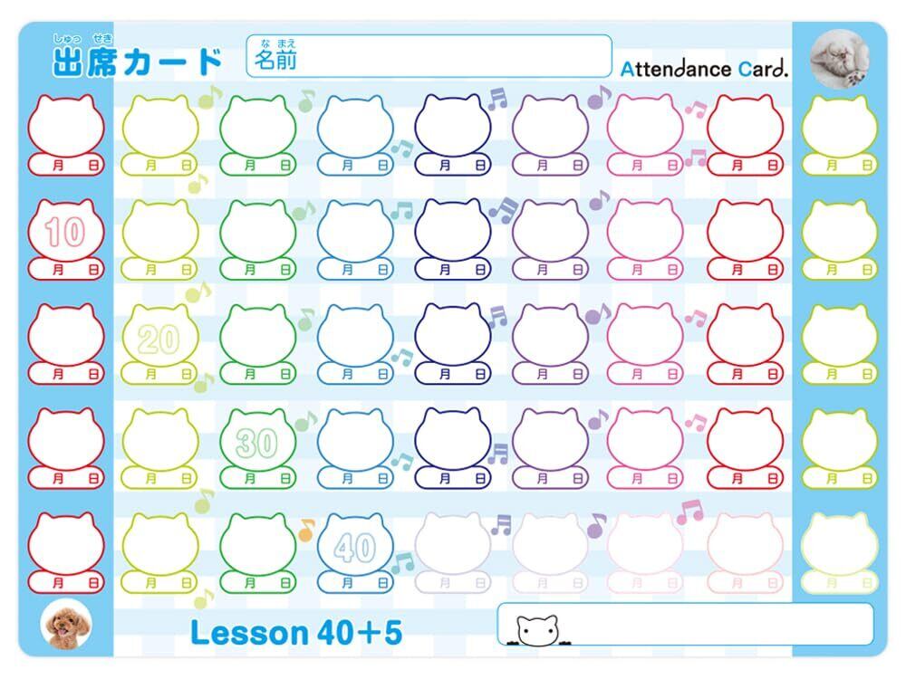 生徒さんにレッスンに参加する達成感や楽しさを感じてもらえる出席カードです!