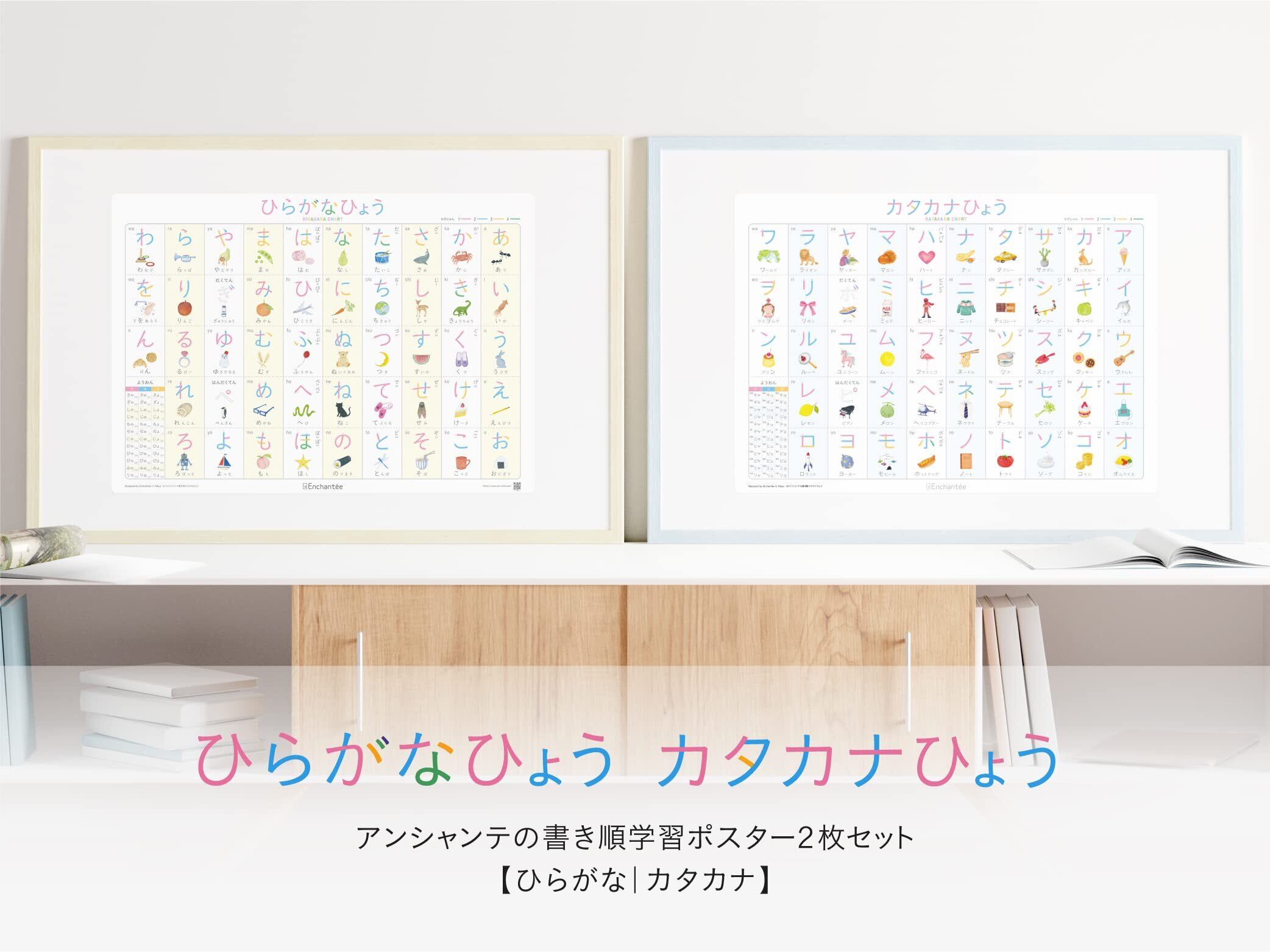 アンシャンテの書き順学習ポスター2枚セット【ひらがな|カタカナ】 防水・A2・角丸