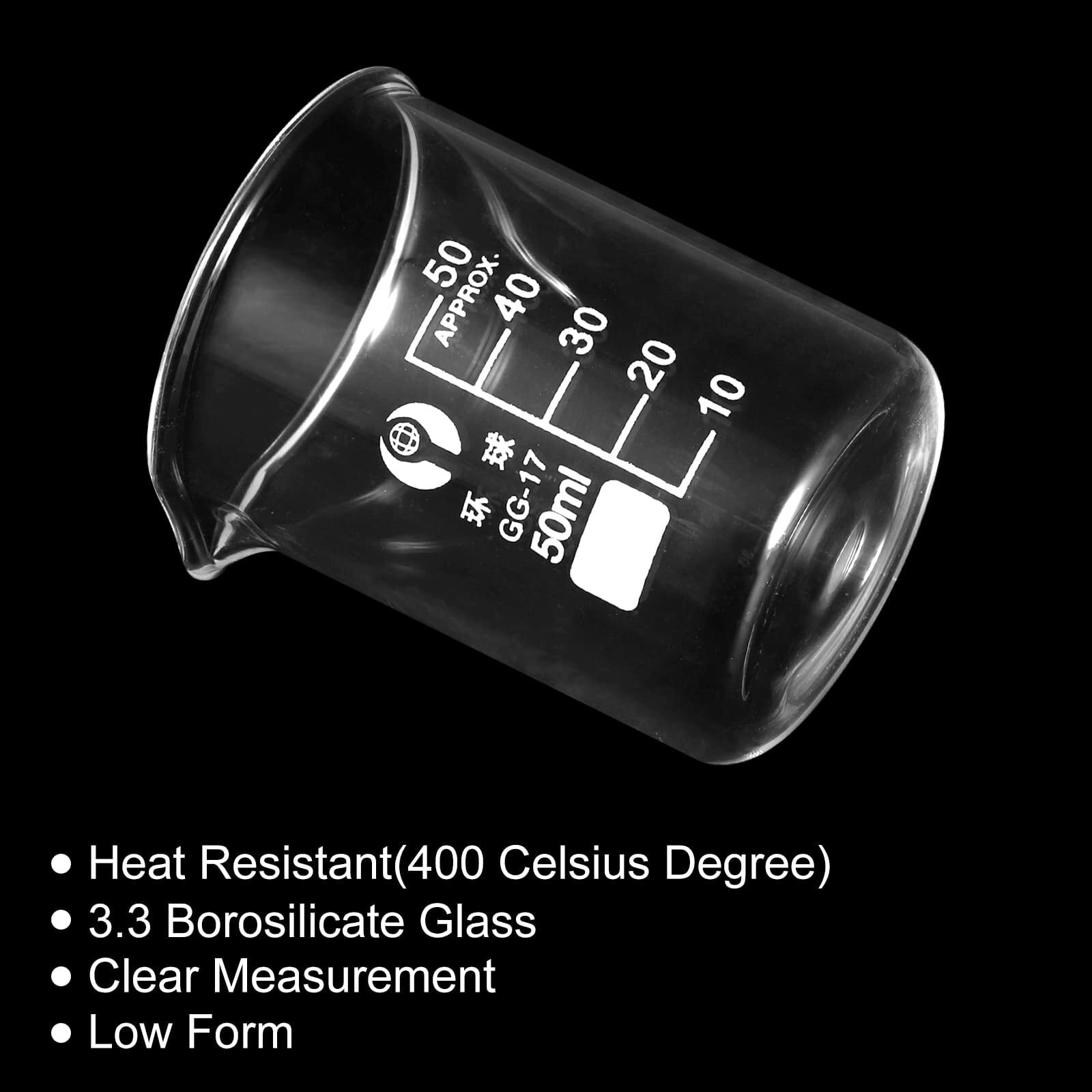 PATIKIL 3個入り 50ml 低い形 ガラスビーカー 計量カップ 測量カップ 3.3ホウケイ酸塩ガラス 注ぎ口付き キッチンラボ用