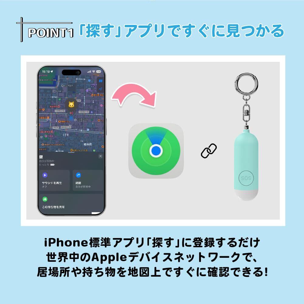 スマホを使用してワンクリックで検索。探しものがスグに見つかる。位置情報で迷子防止や防犯に役立つ。防犯用に130dBのブザー音が鳴らせる。取外ししやすいポータブルフックデザイン