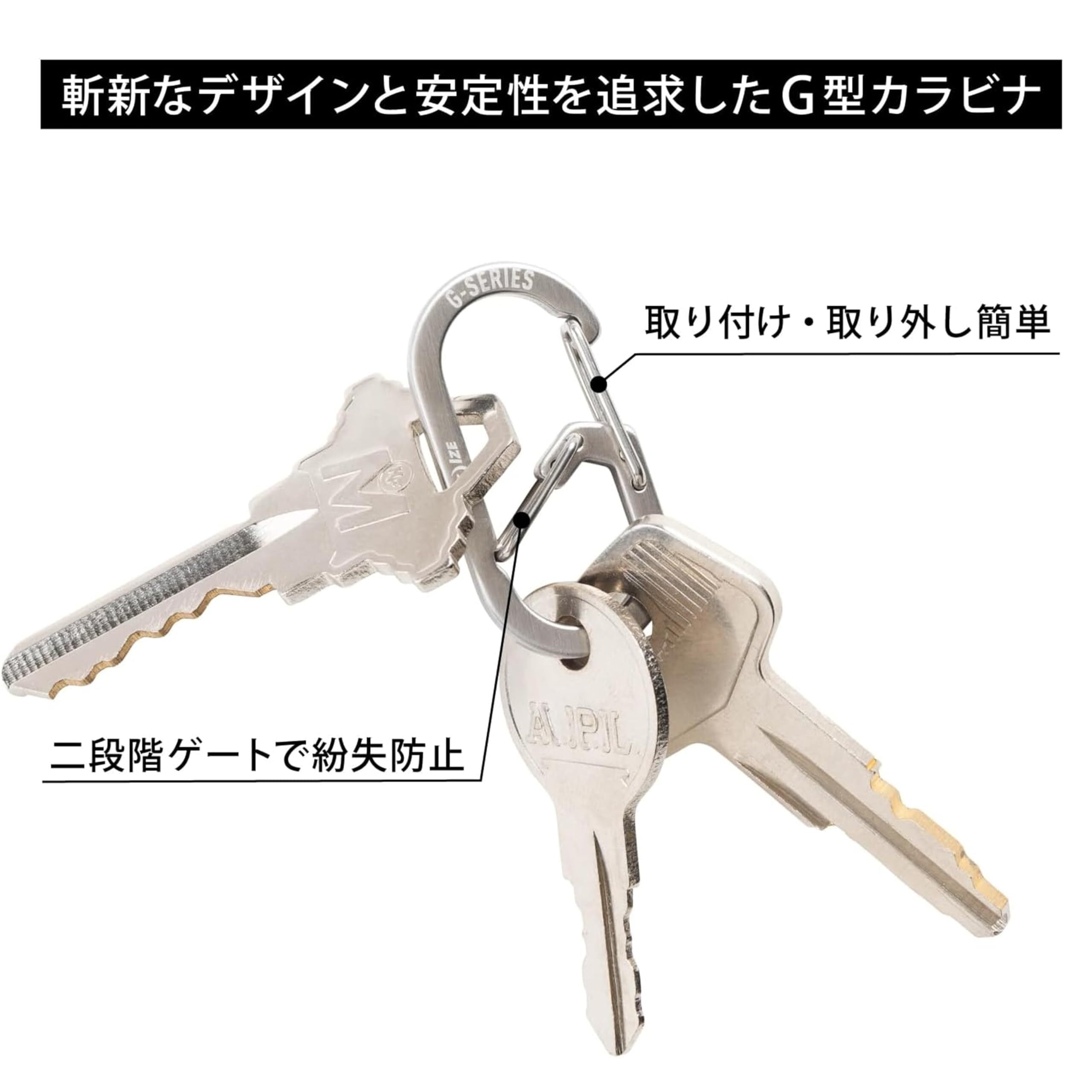 上部には取り出しやすくしたい物を、下部には紛失を防ぎたい物をといったような2通りに分けて引っ掛ける事ができます。#1は2個入りです。