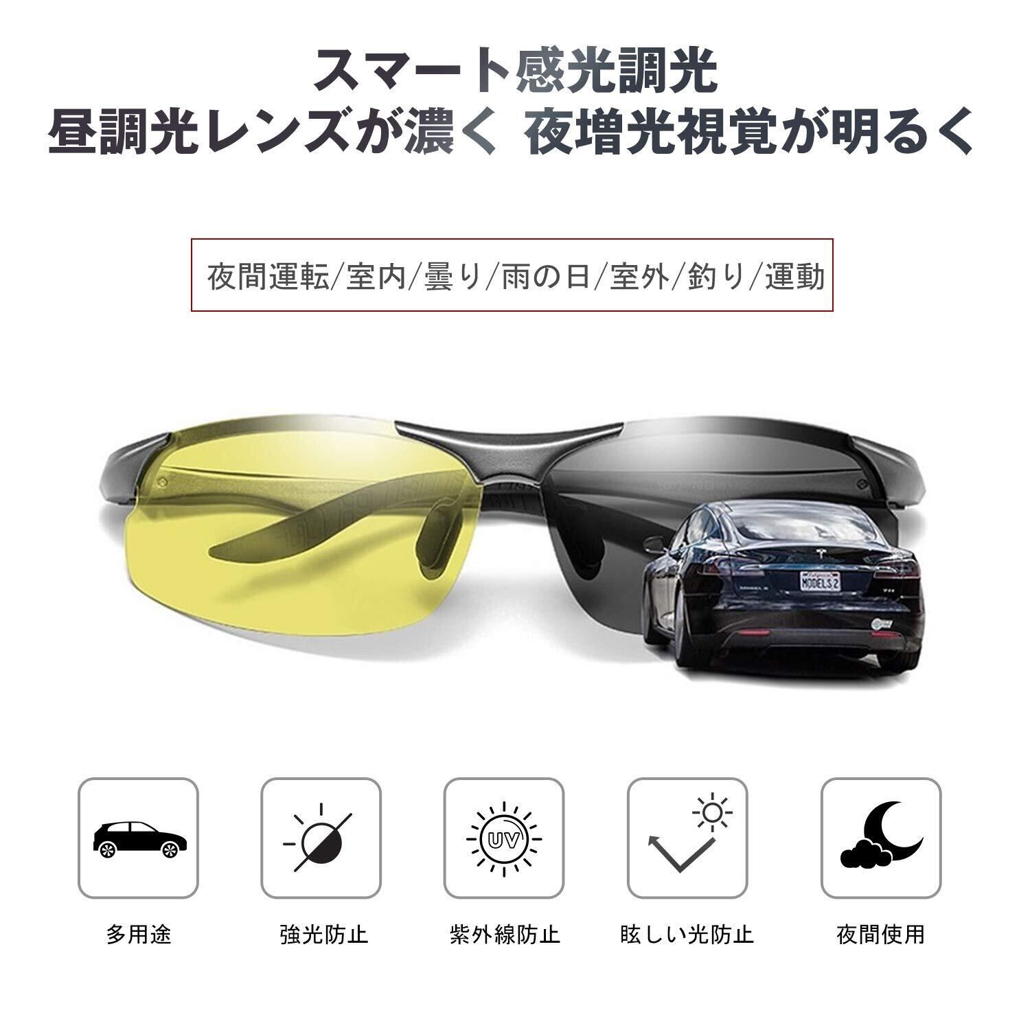 【様々なシーンに】昼だけではなく、夜の暗いところでも自動に光が増え、クリアな視界を与えます、普通サングラス以外に機能が多く、例えば雨、雪、曇りなどの悪い天候とか、運転、ゴルフ、釣り、ランニング、山登り、野球、など屋外の活動に最適です.