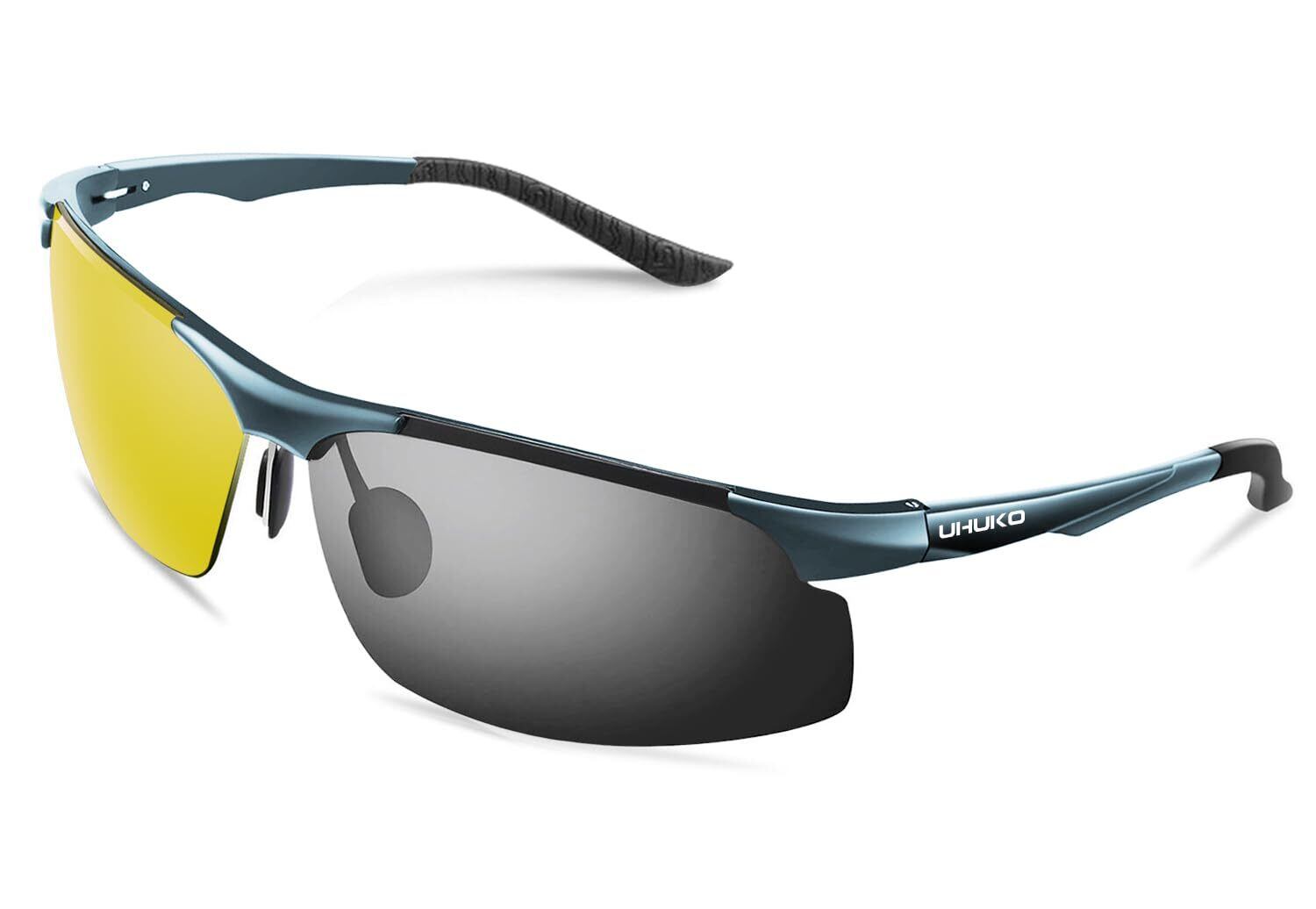 [UHUKO] 調光サングラス 夜間増光 偏光サングラス [昼夜兼用/快速調光/紫外線カット/超軽量]紫外線感知 調光レンズ スポーツサングラスUV400 釣り ゴルフ 雨 曇り 雪 野球 夜間 運転 ドライブアウトドア 登山 変色調光グラス