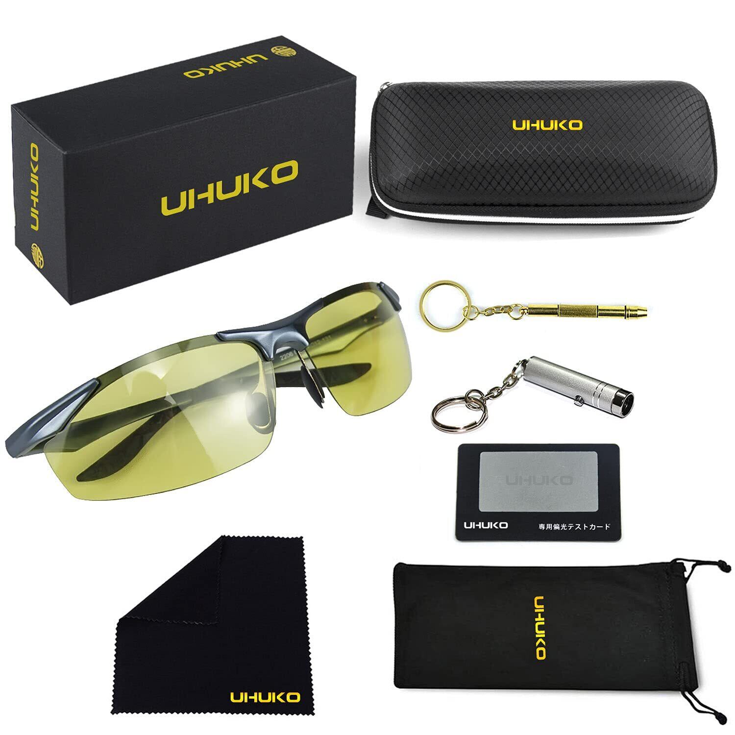 【新春セール】[UHUKO] 調光サングラス 夜間増光 偏光サングラス [昼夜兼用/快速調光/紫外線カット/超軽量]紫外線感知 調光レンズ スポーツサングラスUV400 釣り ゴルフ 雨 曇り 雪 野球 夜間 運転 ドライブアウトドア 登山 変色調光グラス