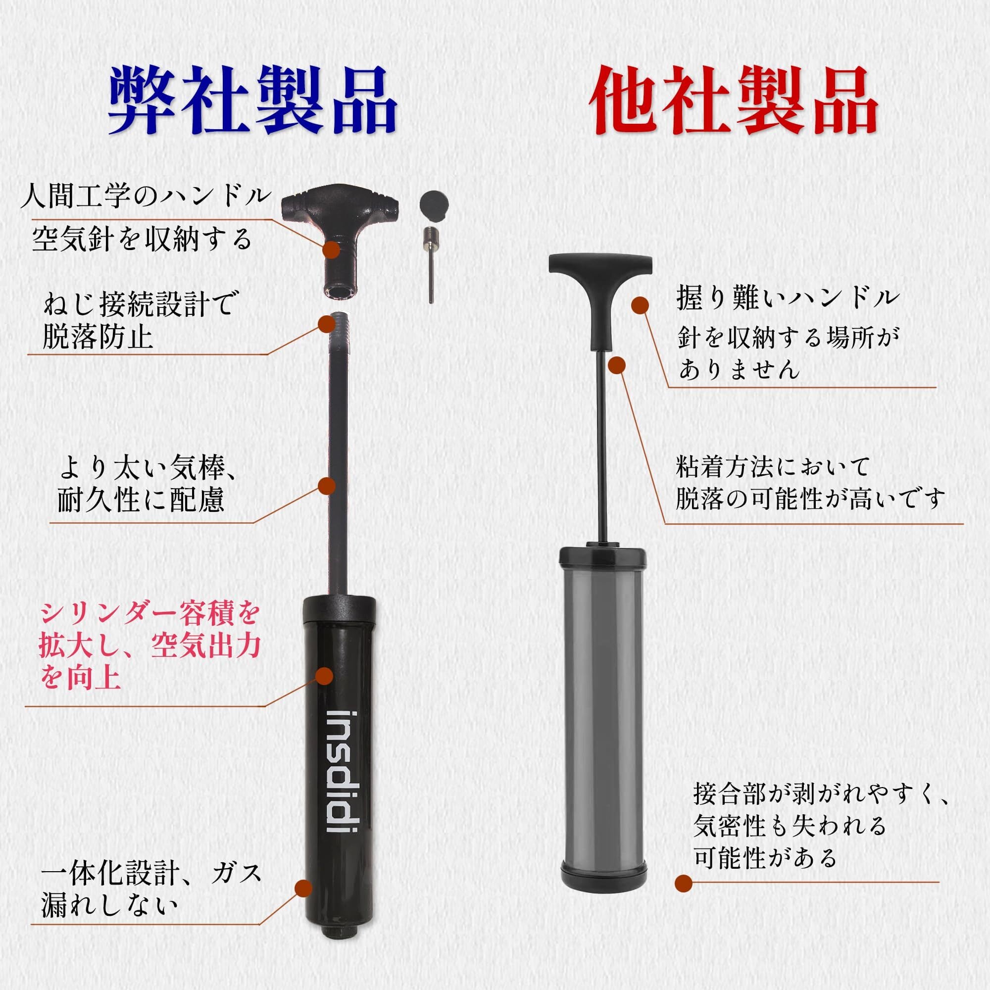 【迅速な充気】人間工学に基づいたハンドルと太い筒体が採用され、握りやすく快適な使用感を実現しつつ、空気の流量を増やし、充填効率を向上させています。これにより、各種ボールや膨張式製品に迅速かつ容易に空気を注入できます。