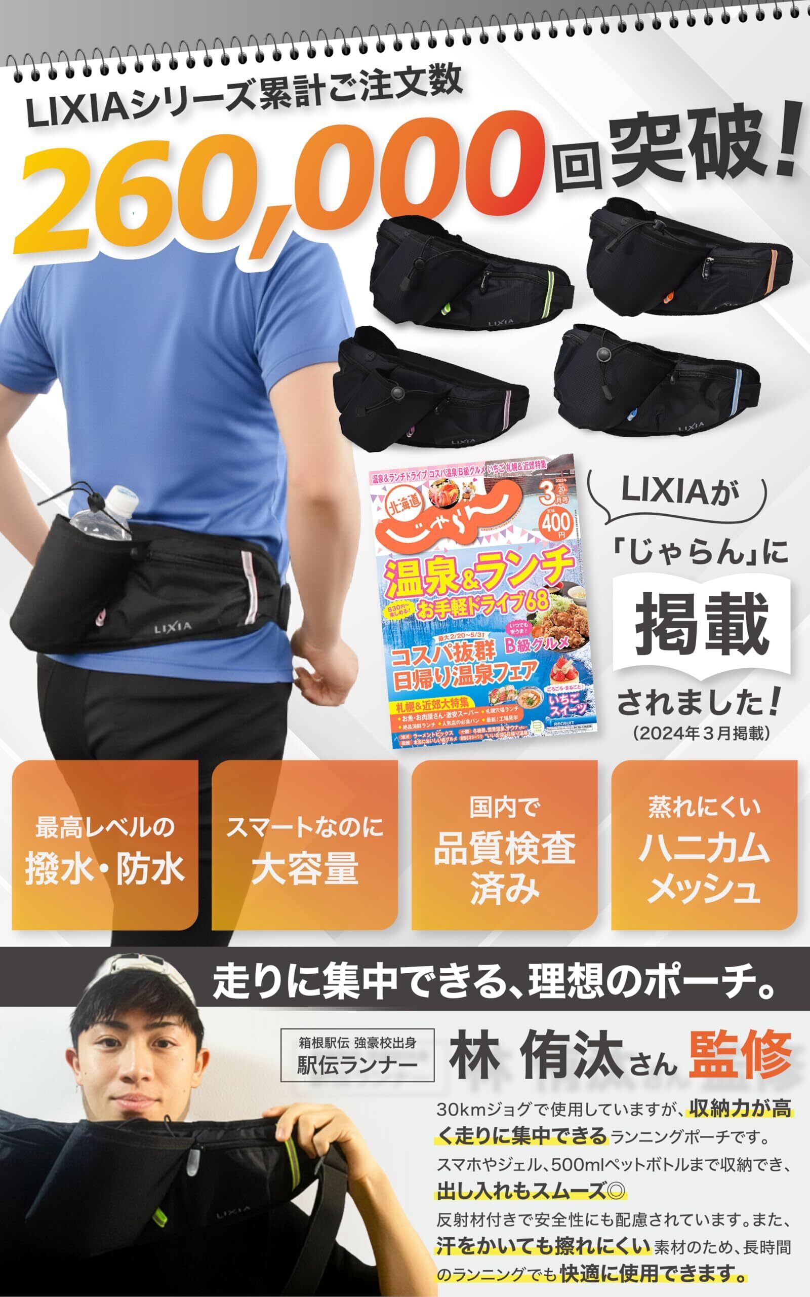 【駅伝ランナー監修】LIXIA ランニング ポーチ 撥水 揺れない 軽量 ボトルホルダー付き スマホ ランニング バッグ ランニングポーチ