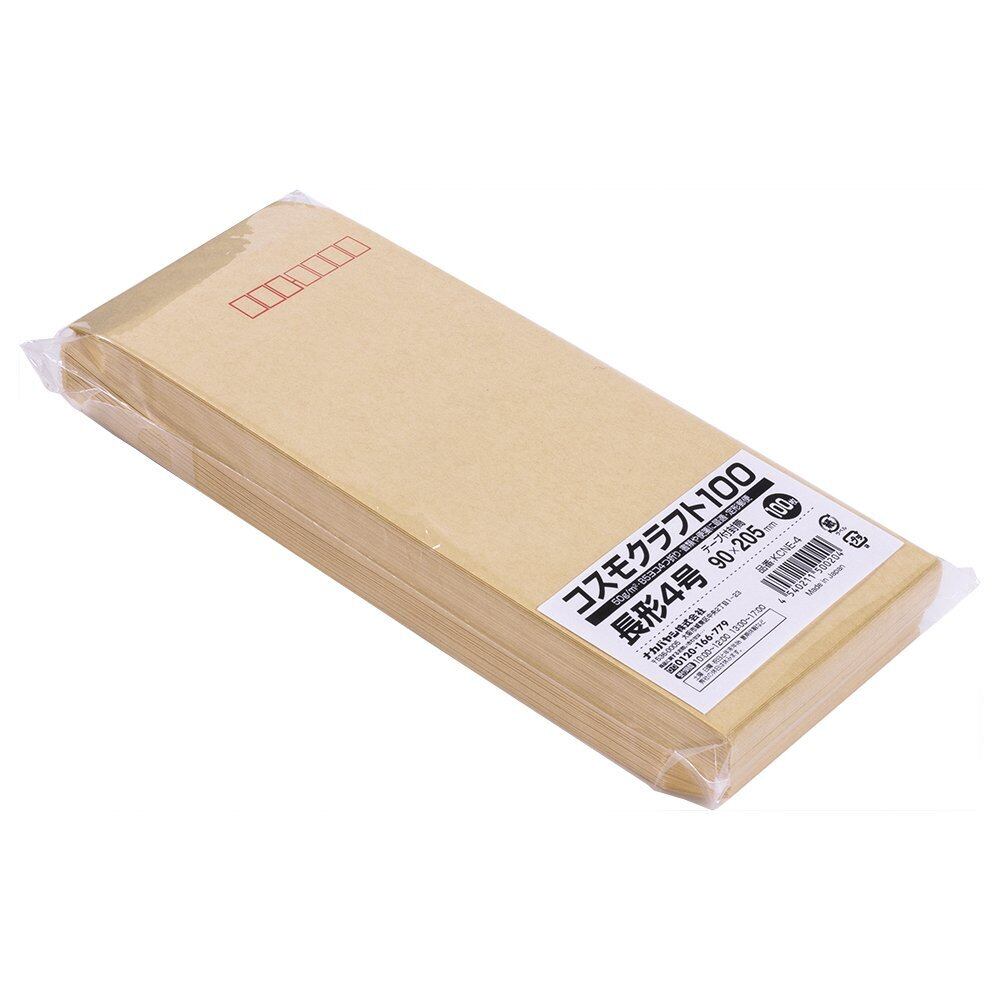 クラフト封筒 長形4号 B5ヨコ4つ折 テープ付 100枚 KCNE-4