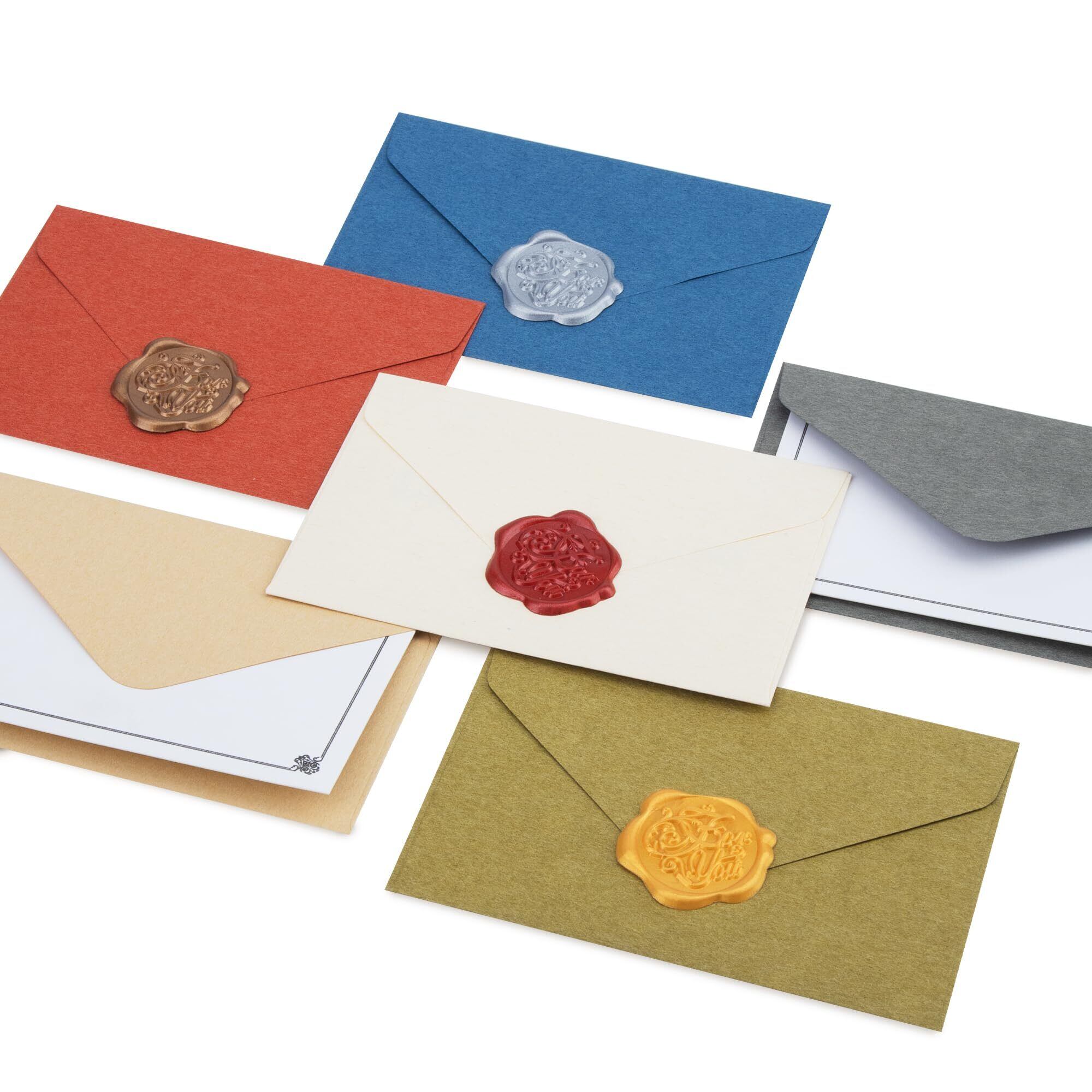 【商品仕様】6色封筒(計12枚):10.5*7cm ミニメッセージカード(計12枚):6.5*9.5cm 4色シーリングワックス シール(計12枚):3cm 合計36点、12枚セット
