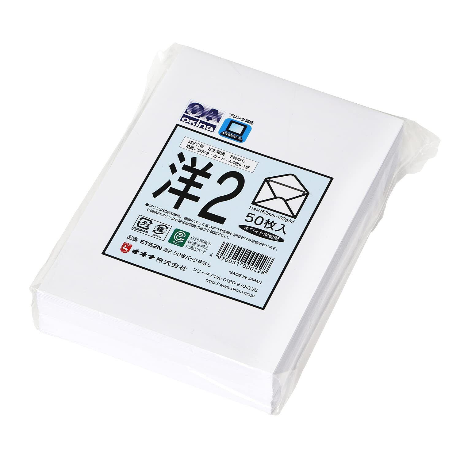 オキナ 洋形封筒 洋型2号 ET52N ホワイト 50枚入