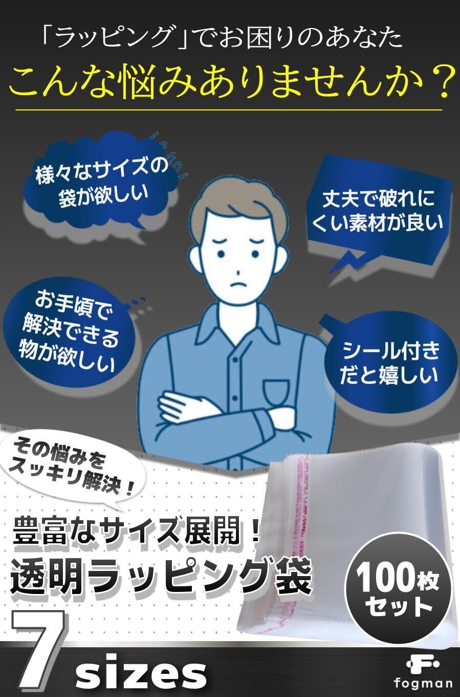 fogman OPP袋 透明 100枚セット 0.5mm厚 シール付き 梱包 個包装 ラッピング (15 x 20cm)