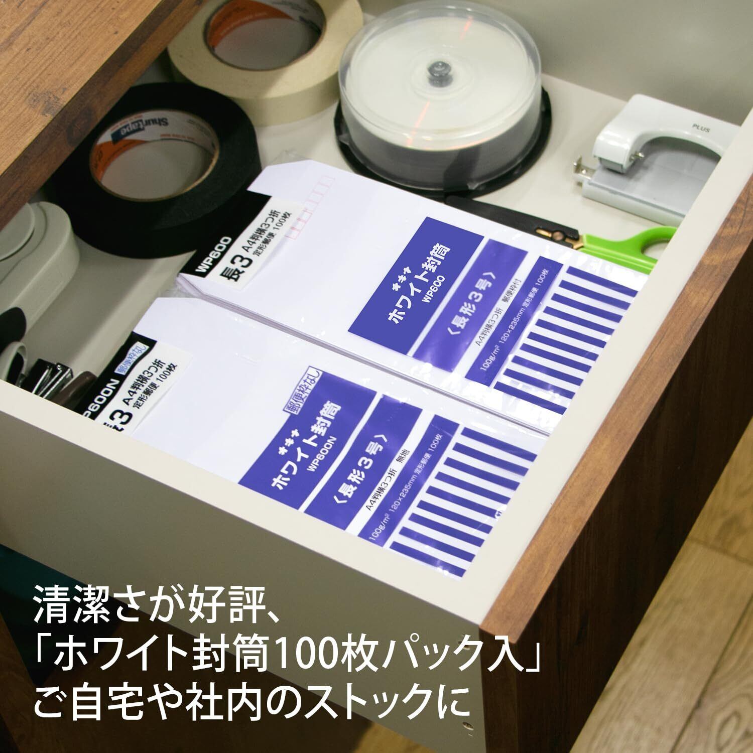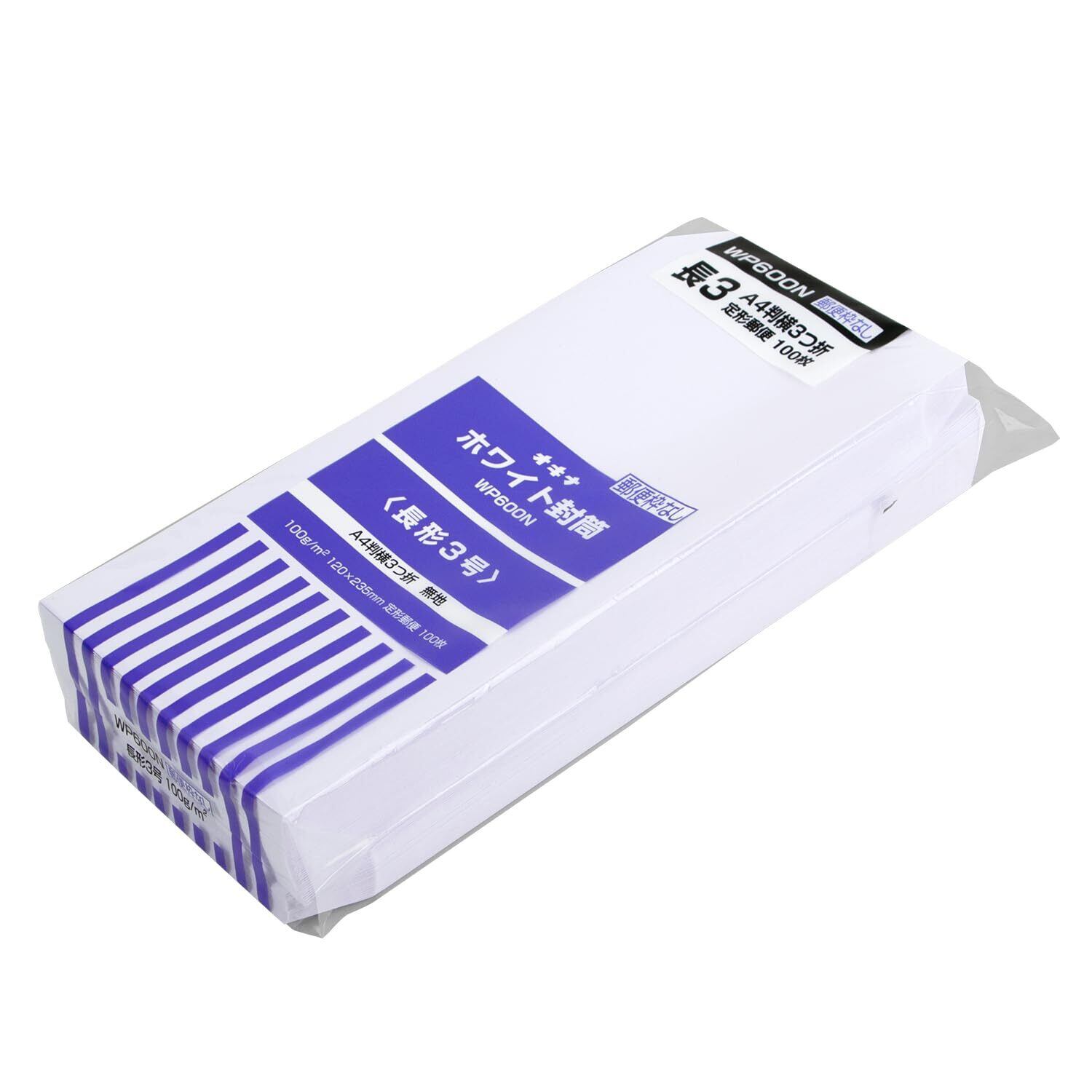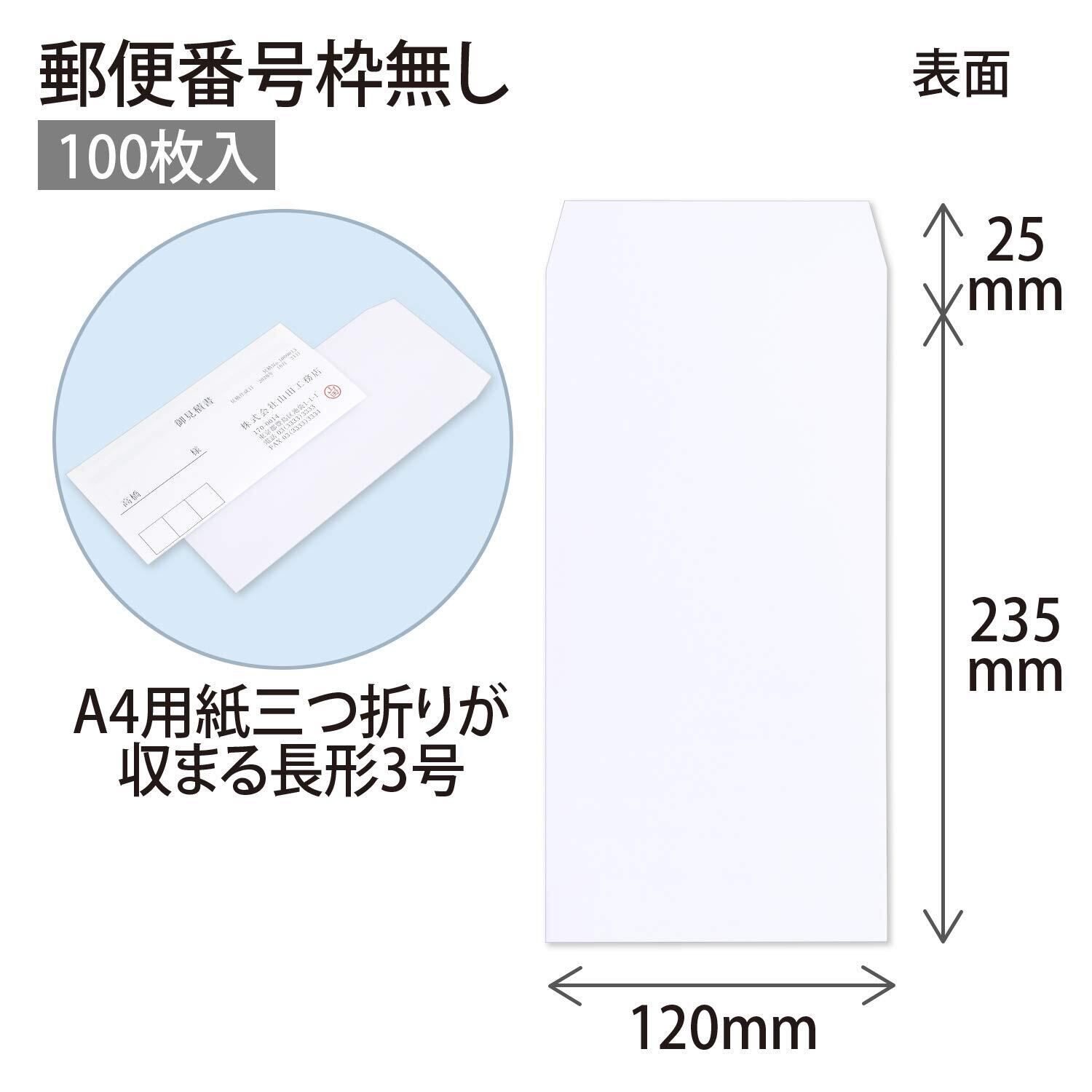 オキナ ホワイト封筒100 長3 郵便枠無し WP600N 100枚入