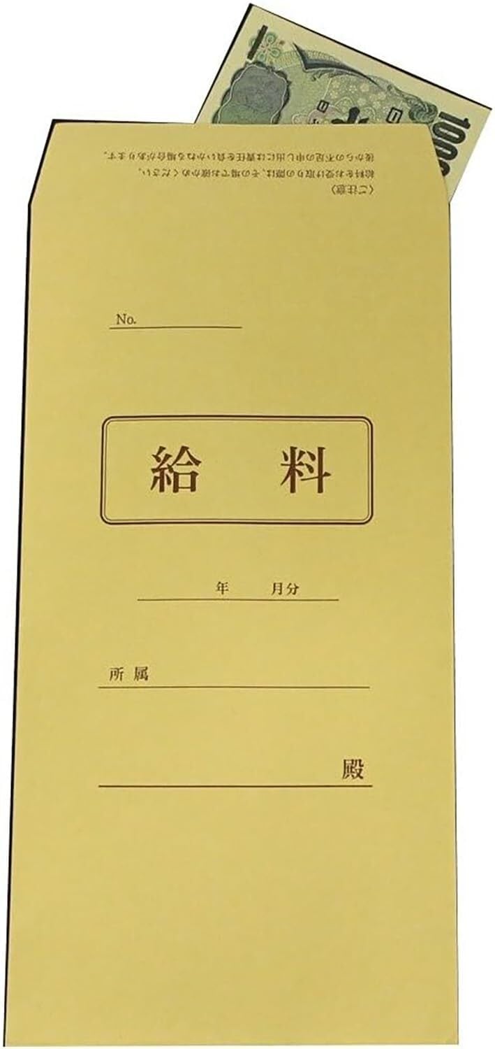 プリンターで出力した給料明細書が入る給料袋。