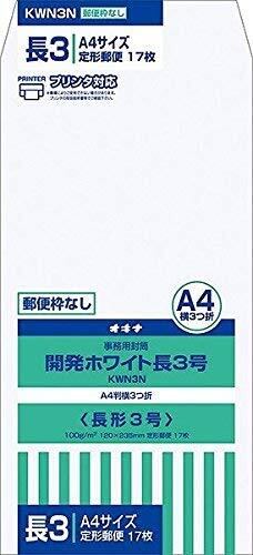 オキナ 開発ホワイト封筒 長3号 枠なし 17枚入 KWN3N