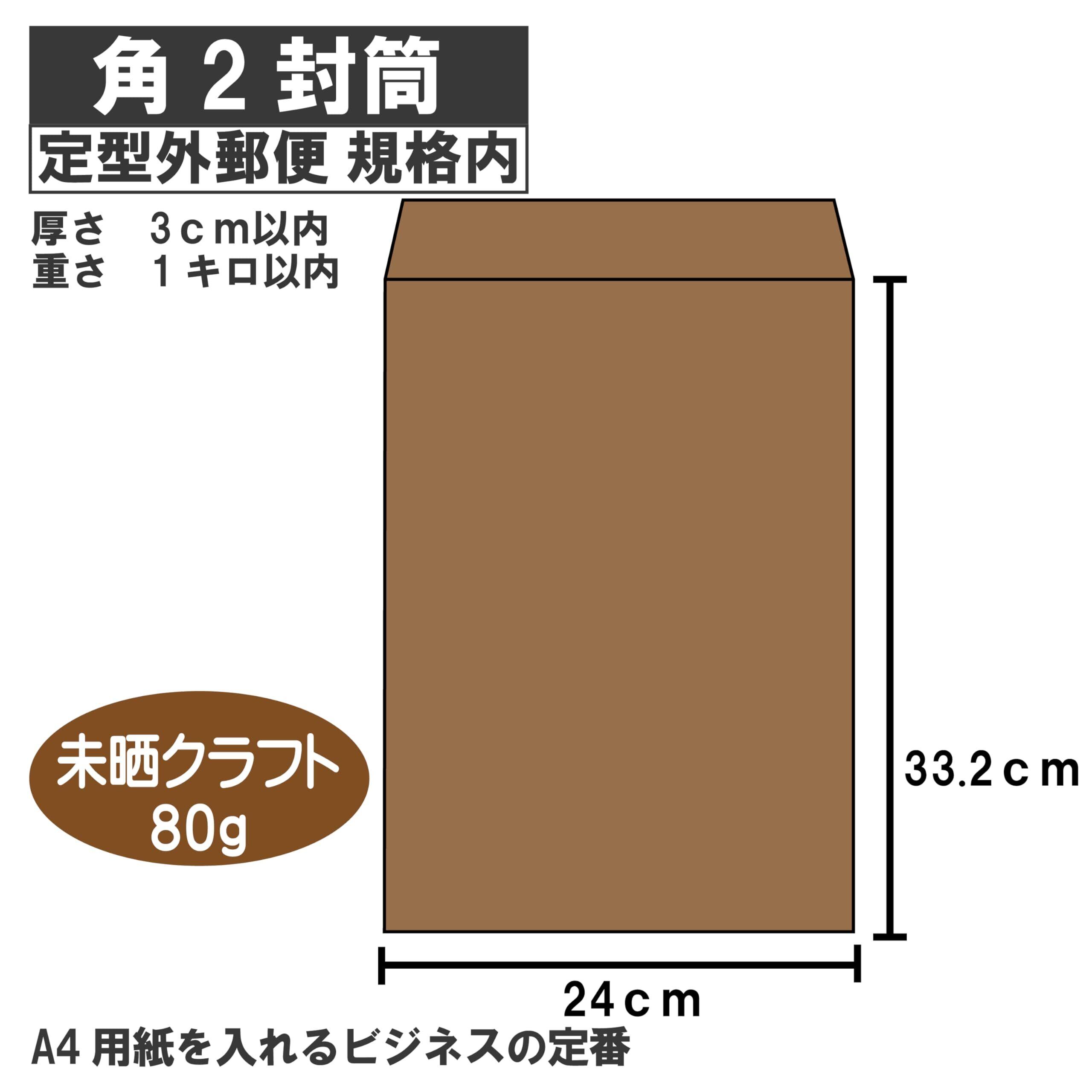 未晒クラフト 角2封筒 50枚 /角形2号 /A4サイズ/ 茶/クラフト/センター貼り/事務用/おしゃれ/かわいい/みざらし