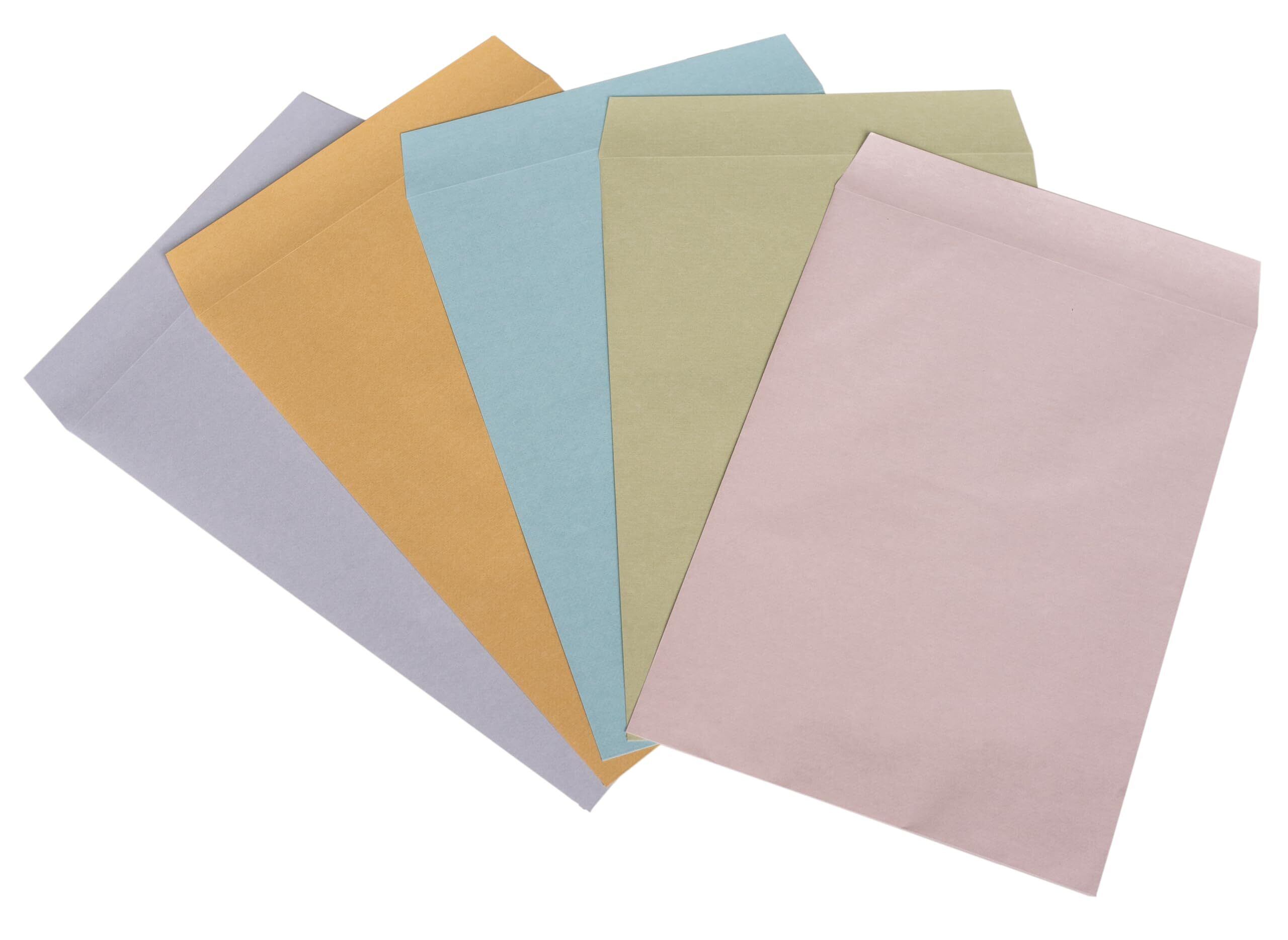 アソート カラフル封筒角2サイズ くすみカラー 50枚(各色10枚×5種) 24×33.2㎝ /ビジネス/書類/A4/コピー用紙/返信用/クラフト/センター貼り/事務用/おしゃれ/かわいい/カラー/セット