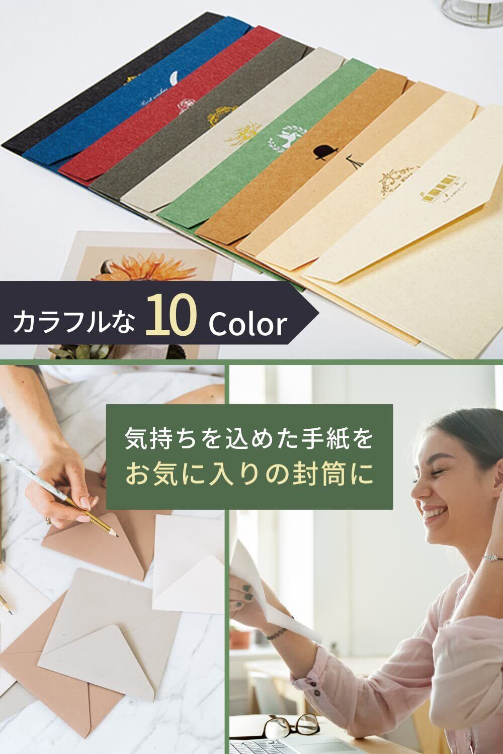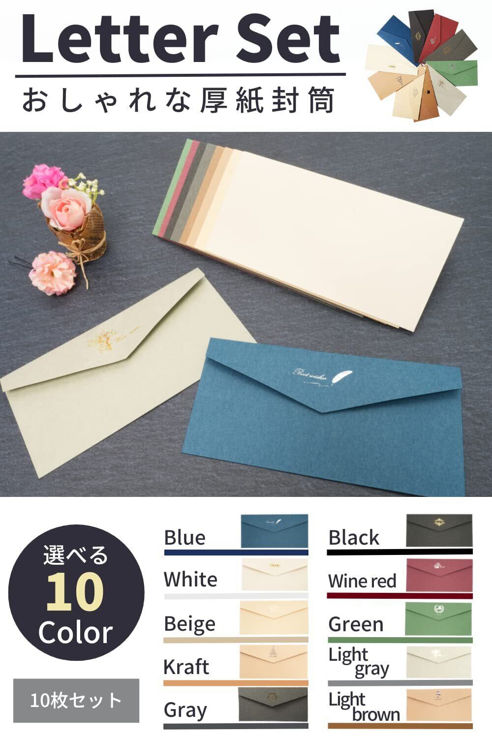 [KingHappy] 封筒 おしゃれ 10枚セット 22×11cm 厚紙封筒 (ブルー)