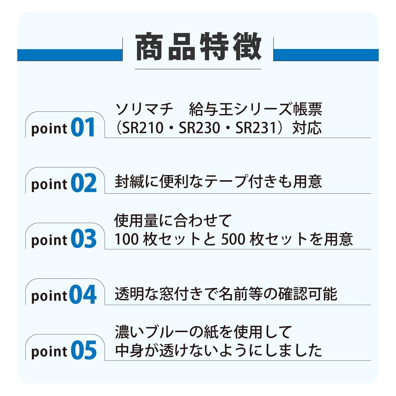 【新着商品】給与明細封筒 テープ付 ソリマチ SR291対応 ブルー 【100枚】 窓付き封筒 給与 賞与 事務 会社