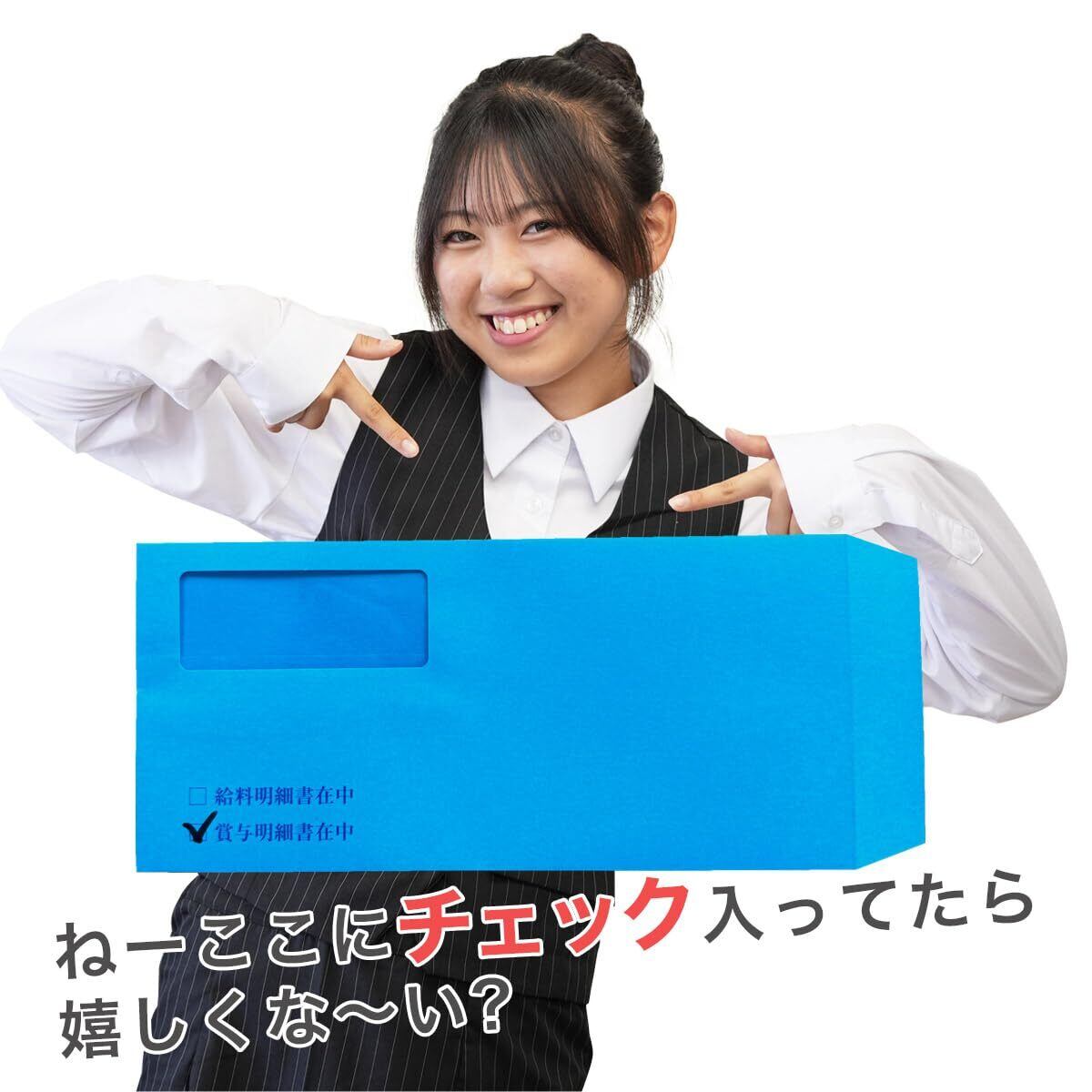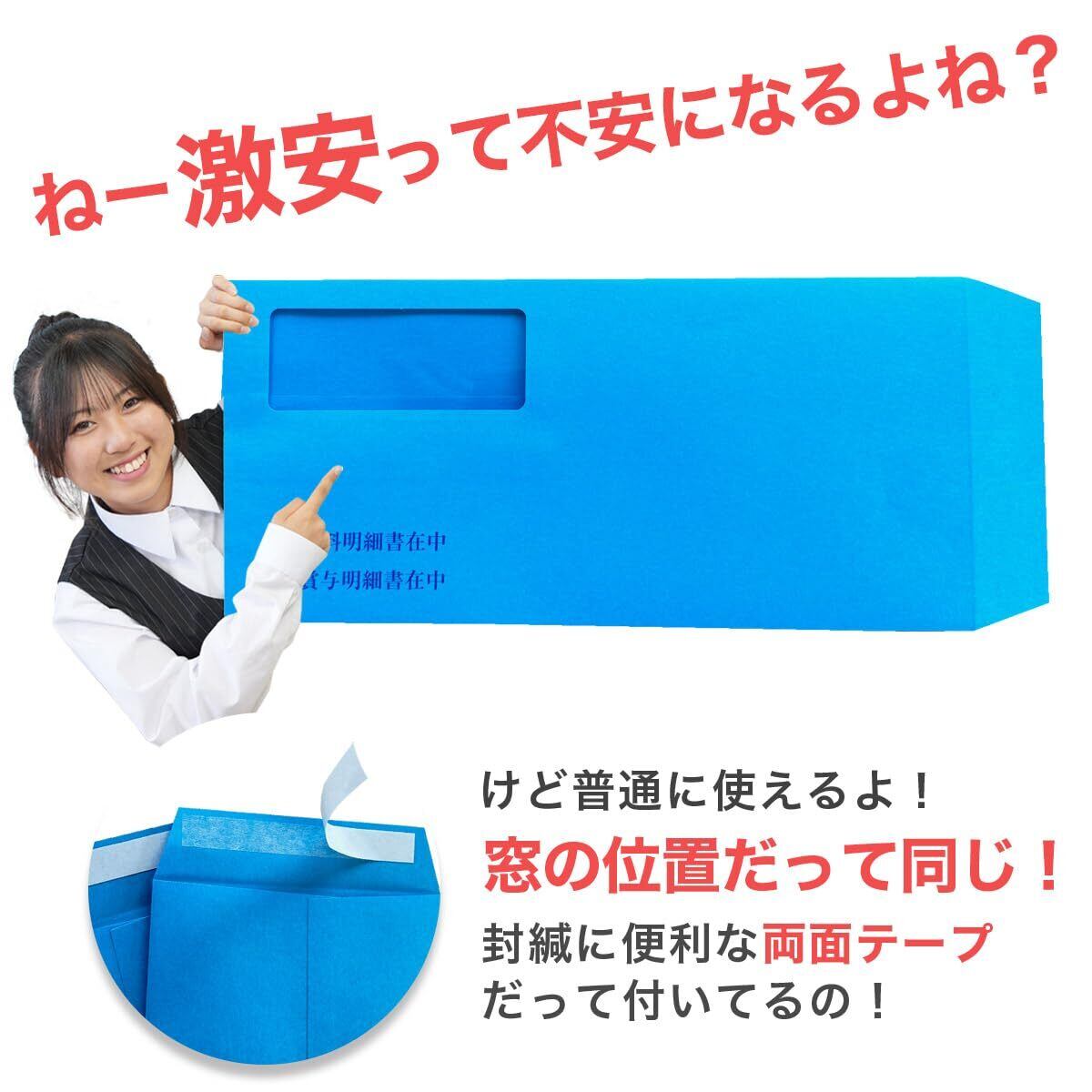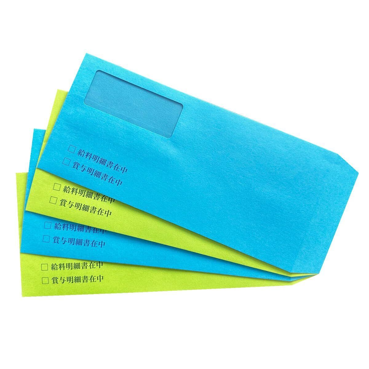 ソリマチSR291対応品 給与明細書用窓付封筒 (ブルー, 100枚)