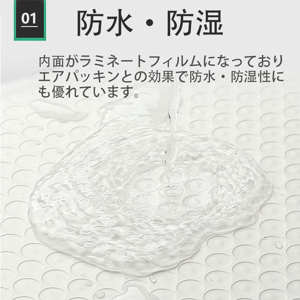 【材質】表面は紙ではなく、緩衝材PEポリエチレンなので破れ難く、雨でも中身が濡れない。内側には緩衝材エアーキャップが付いているので、外部の衝撃力 を緩和することができます。配送用の封筒として、丈夫だけではなく、とても安全です。