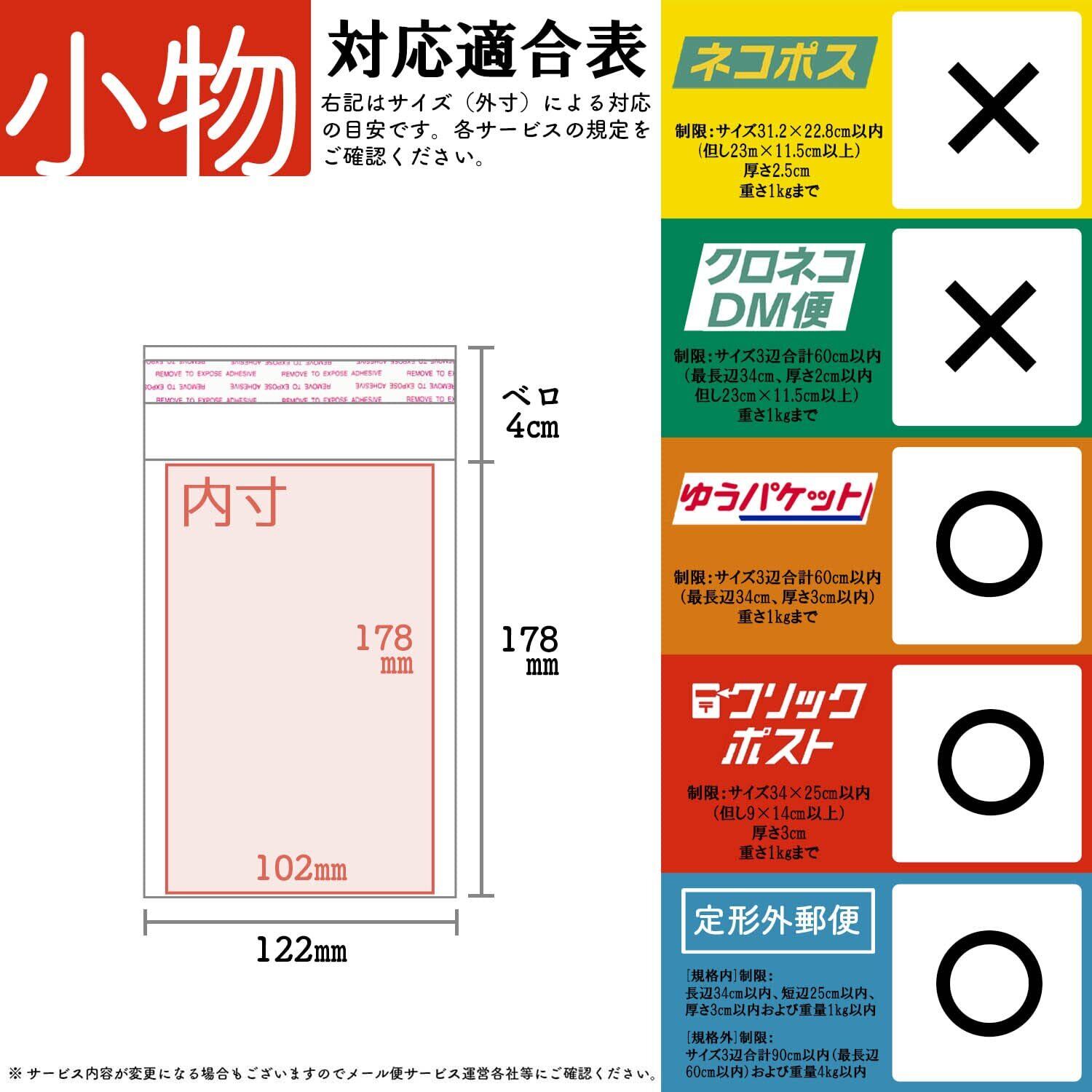 封筒の中に緩衝材(プチプチ)を装着しており、中身を衝撃から守ることができる。衝撃を与えたくない物を発送するのに向いている。テープ付きのため、簡単に梱包できる。防水にも優れいている。