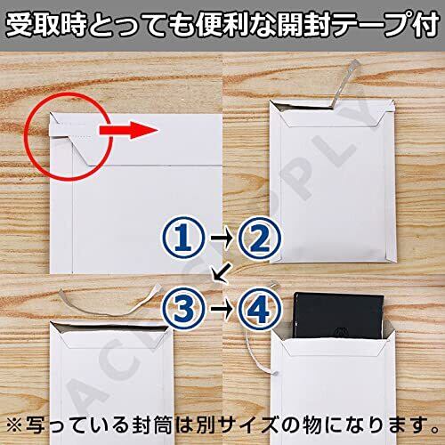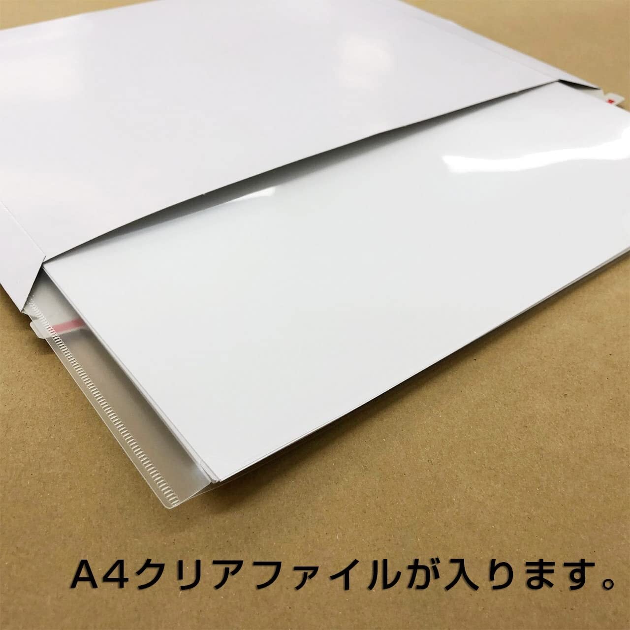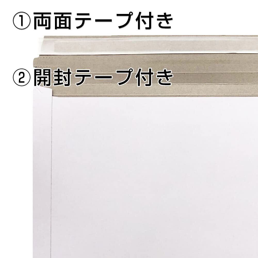 2022年1月製造のLotより封部分を改良いたしました。封部分40mm→55mmに変更しました。【以前の封筒に比べ、厚みのある内容物を入れた際に隙間ができづらくなりました】マチ折線加工を施しました。【マチ折線を組み立てる事により、以前の封筒に比べ、厚みのある内容物を入れやすくなりました。※マチ折線を組み立てるとその分内寸が狭まります。※最大2.5cm程】 厚紙製の為、普通の封筒に比べ頑丈さがあります。封をする両面テープが付いているので、別途テープや糊は不要です。開封時に便利な開封ジッパー(開封テープ)も付いています。小冊子や書籍、A4書類などを発送する時にとても便利な封筒で、メール便、宅配便どちらでも発送が可能です。 注意事項:記載サイズは何も入っていない平らな状態でのサイズとなります。内容物を入れた際に、内容物の厚さに対して、封筒が膨らむ為、サイズが狭まりますので内容物の厚さをご確認の上、ご使用ください。※ぴったりサイズ、ギリギリのサイズでは物によっては入らない場合がございますので、余裕をもったサイズをお選びください。厚さのある物を入れたい場合は高さのあるダンボール箱をおすすめします。製造工程において避けられない誤差が最大±3mm生じる場合がございます。