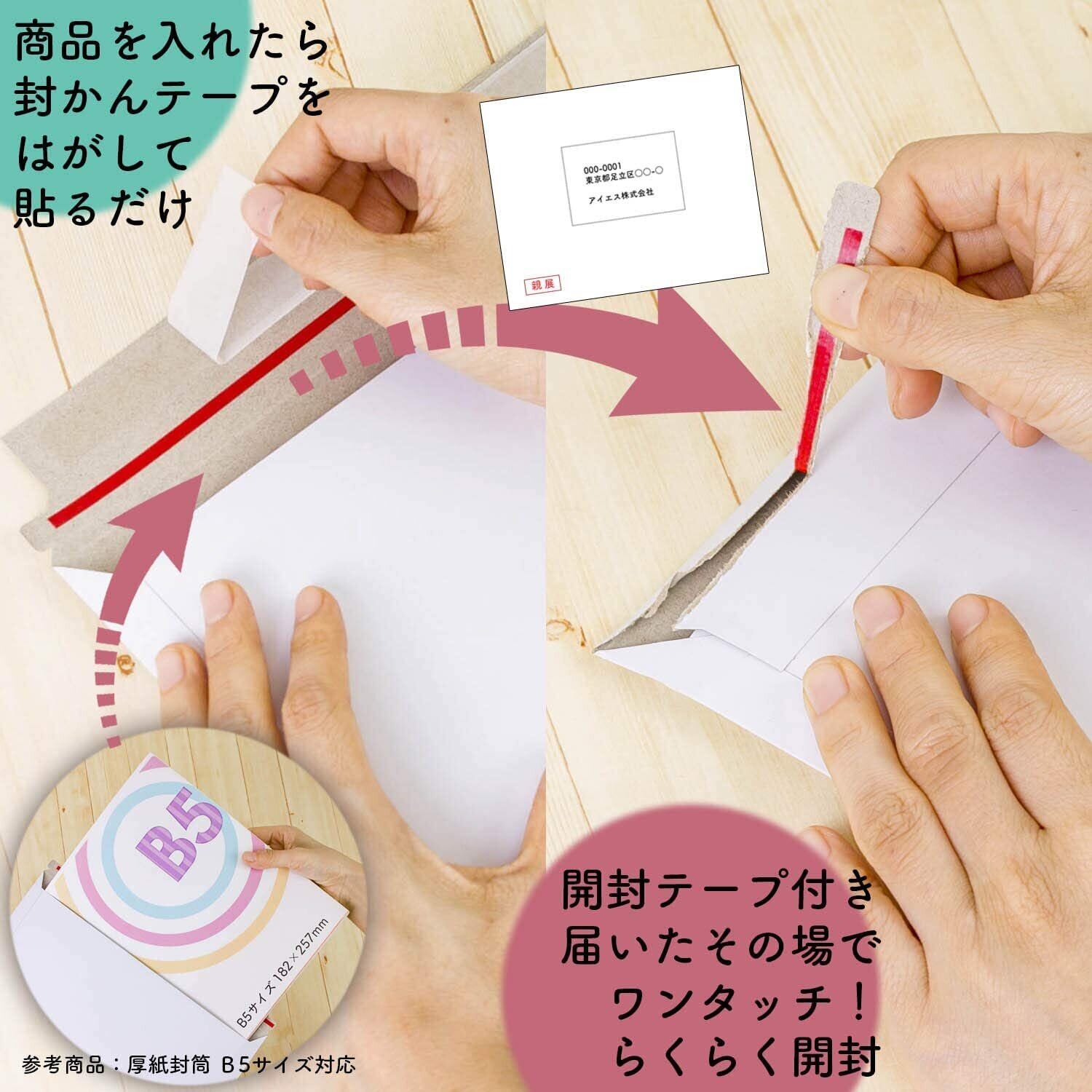厚紙で作った封筒のため、折れ曲がりや衝撃から守ることができる。書類やカタログ、原稿などの送付に。