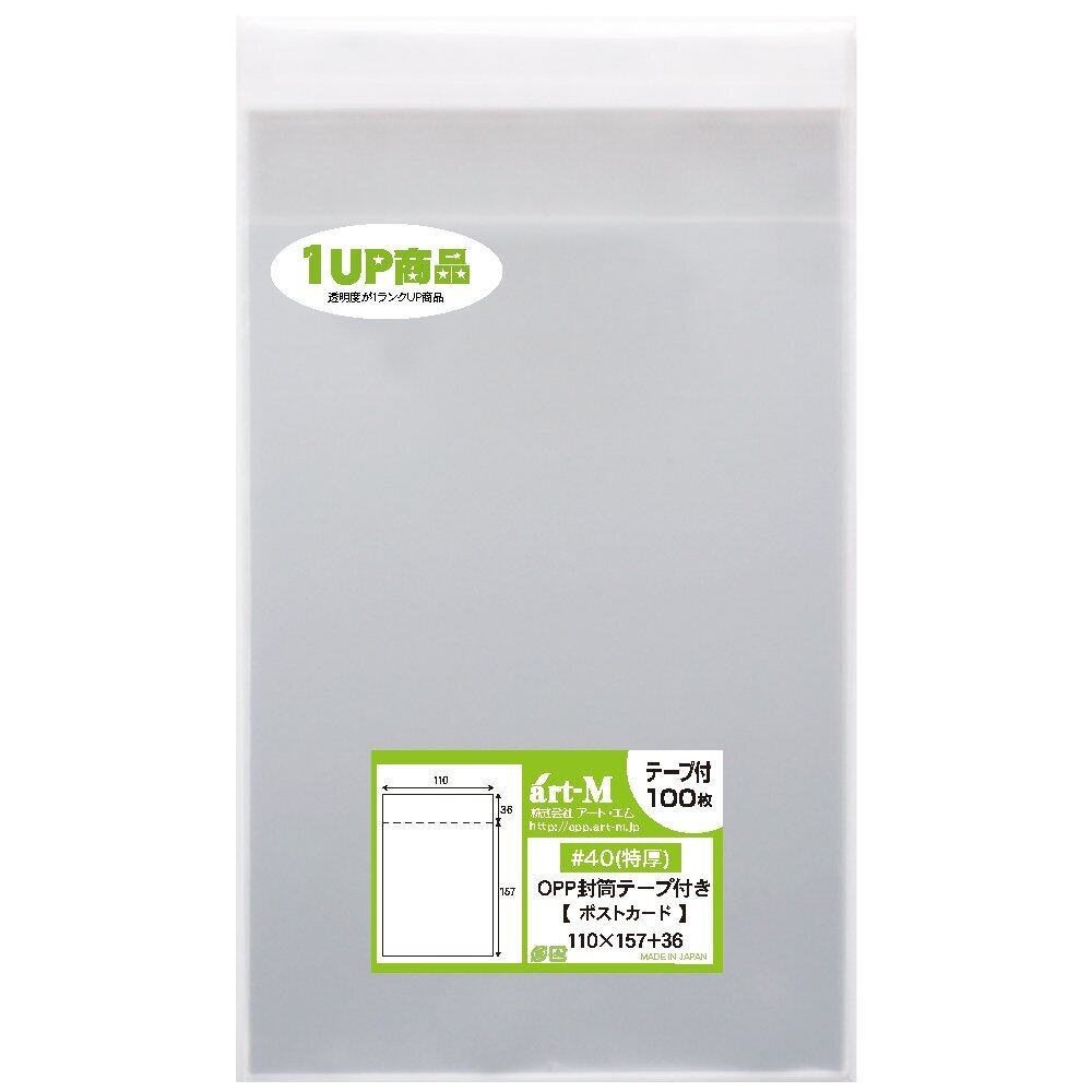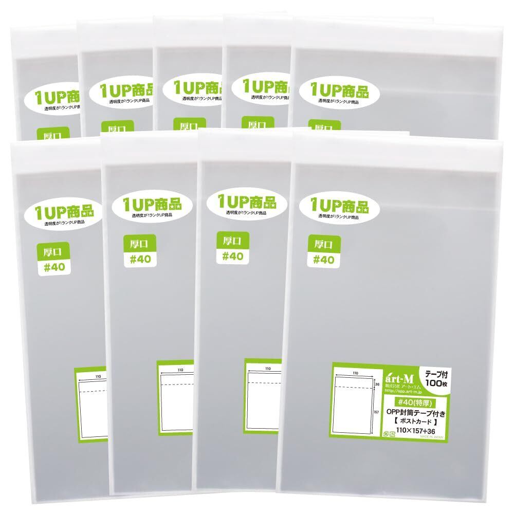 アート・エム 1up商品【国産 厚口#40】 テープ付 ポストカード用 【ポストカード用/A6用紙】透明OPP袋(透明封筒)【100枚】110x157+36mm