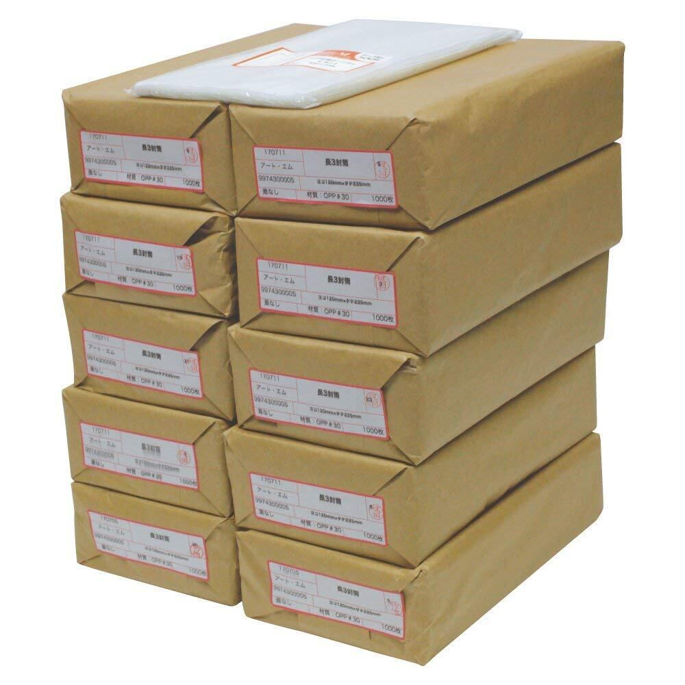 アート・エム 1up商品【国産】テープなし 長3【 A4用紙3ッ折り用 】透明OPP袋(透明封筒)【1000枚】30ミクロン厚(標準)120x235mm