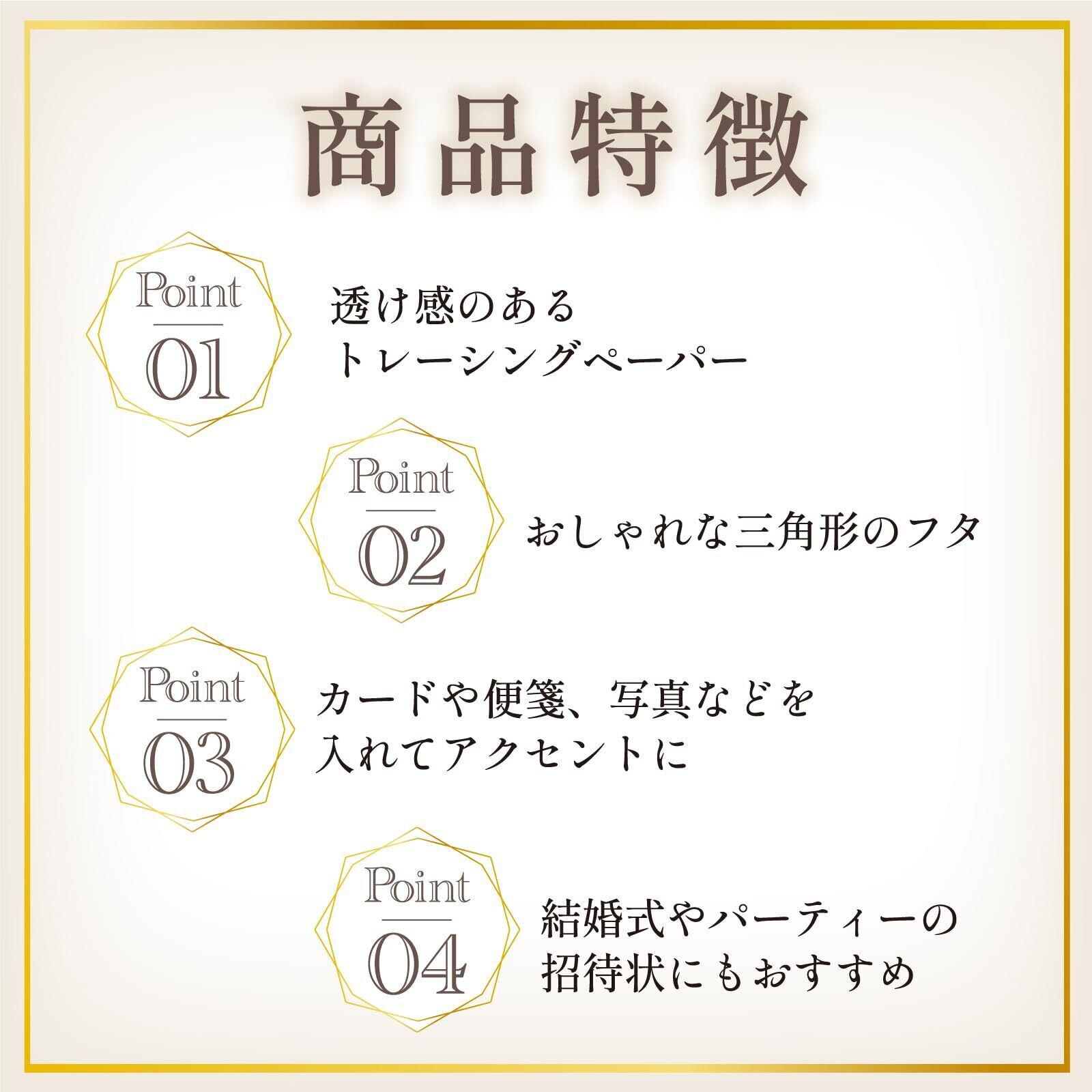 挨拶状、招待状などご案内のお手紙に。また、写真やカラフルな用紙を入れれば中身が透けて特別感を演出できること間違いなしです。