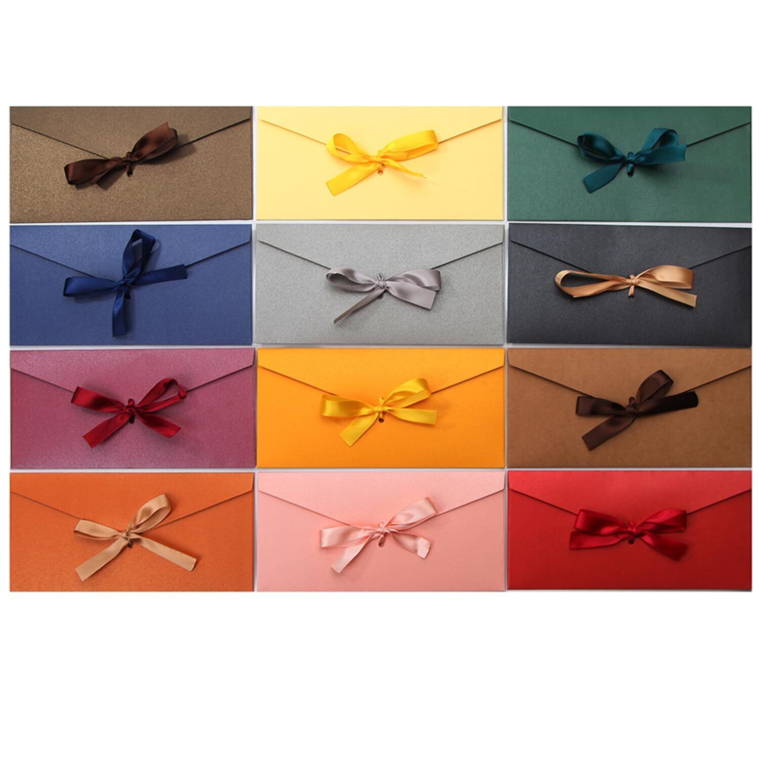 レターセット おしゃれ 無地封筒 かわいい リボン 長い封筒 メッセージカード ポストカード 厚紙 挨拶状 案内状 招待状結婚式 記念日 感謝祭 お祝い ビジネス用封筒 12色 12枚