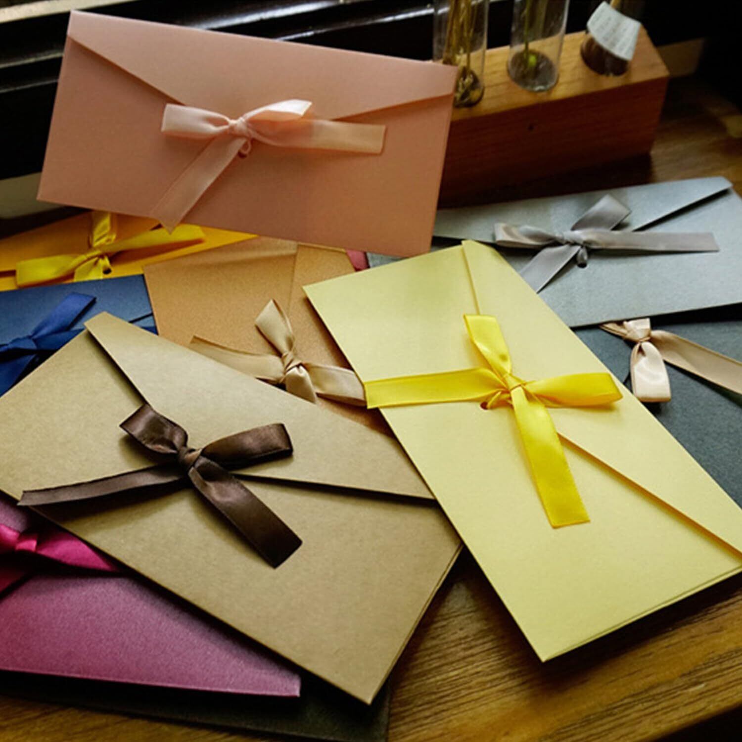 【幅広く使用】ビジネスシーン、バレンタインデー、感謝祭、誕生日会、結婚式などで広く使用されている無地のリボン封筒です。プレゼントとして、この封筒を使う必要があるかもしれない人に贈るのも良い選択です。