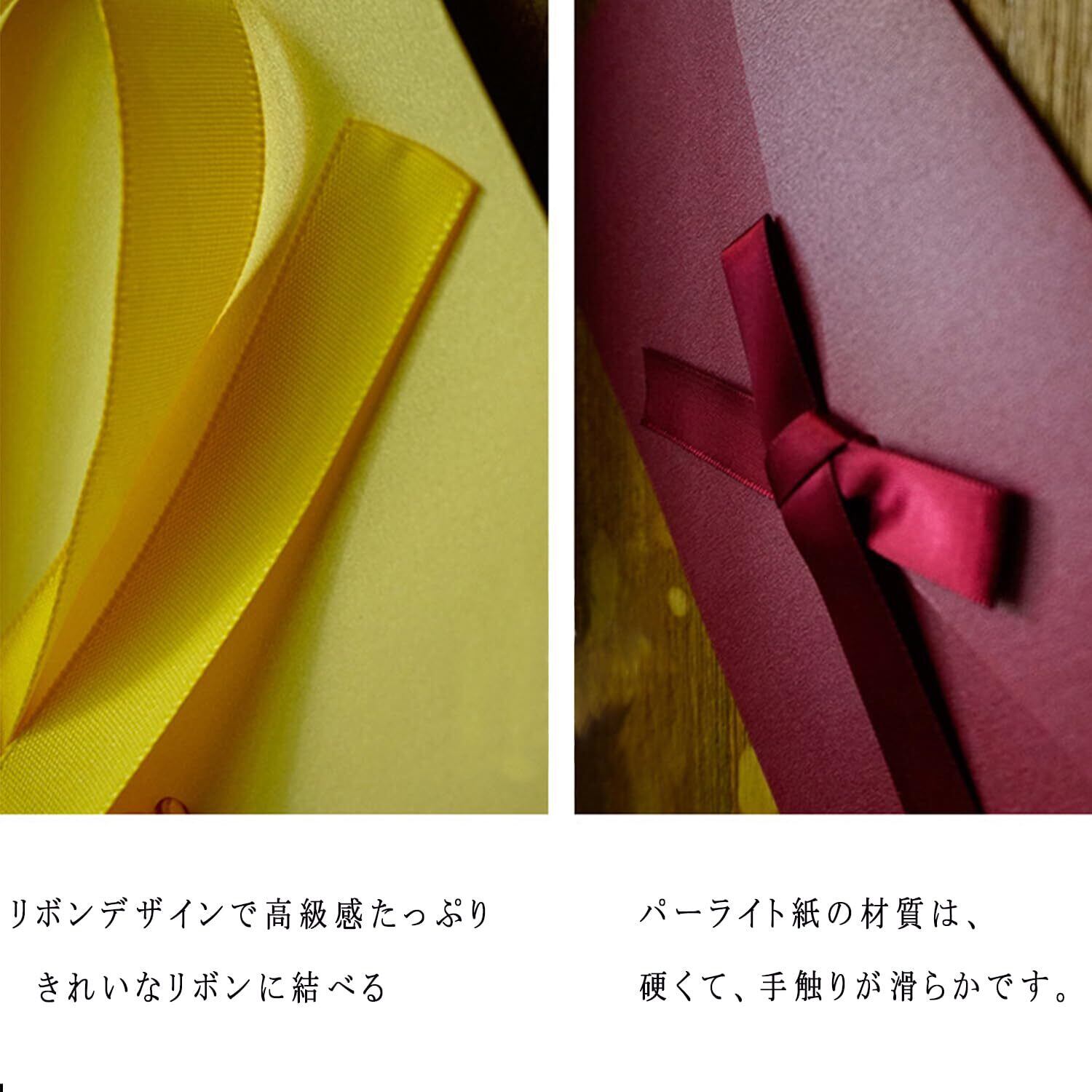 【かわいいリボン】封筒にはリボンが結ばれていて、リボンの色は封筒に対応していて、かわいくておしゃれです。(リボンは自分で仕上げる必要がある)