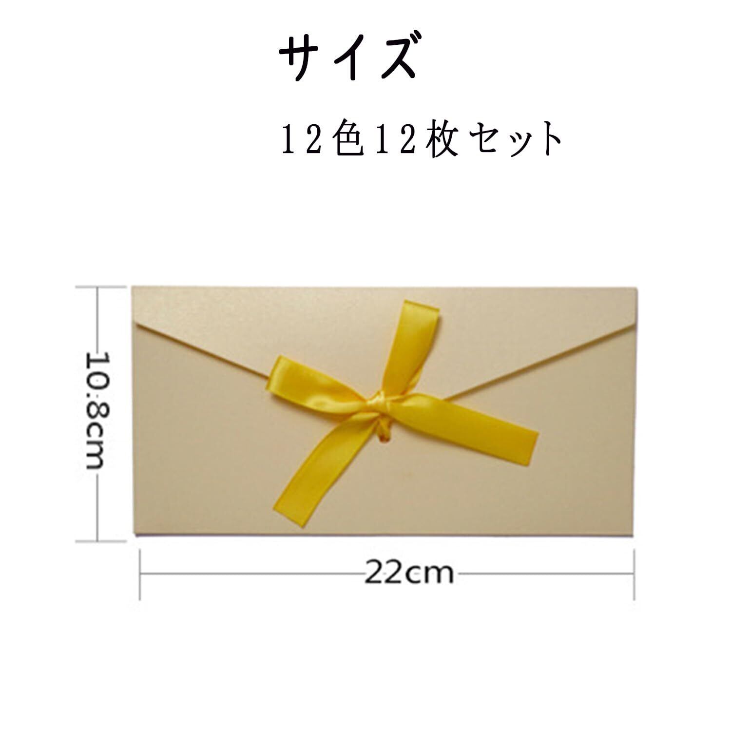 【人気商品】レターセット おしゃれ 無地封筒 かわいい リボン 長い封筒 メッセージカード ポストカード 厚紙 挨拶状 案内状 招待状結婚式 記念日 感謝祭 お祝い ビジネス用封筒 12色 12枚