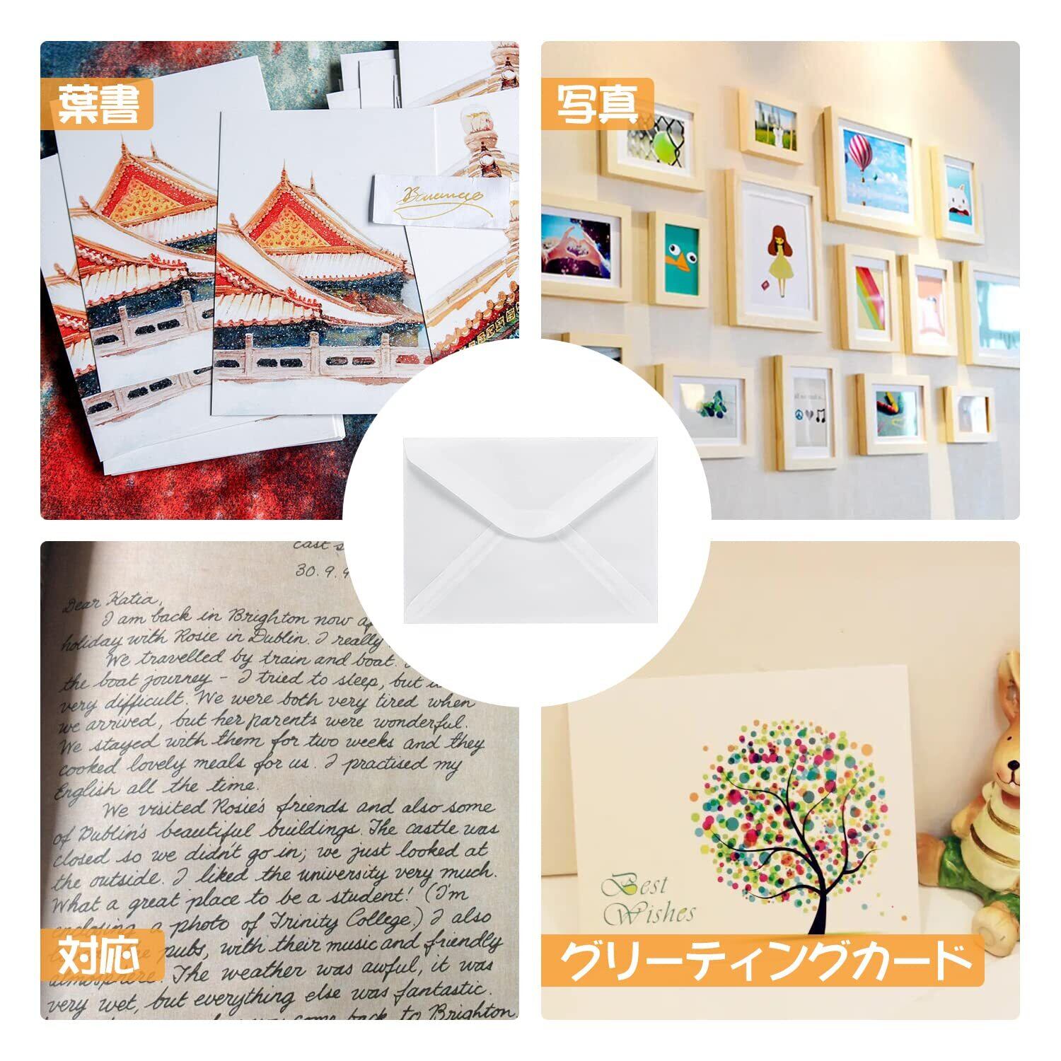 【高級封筒】良好な透明性、変形なし、防水、防湿,シール?シーリングワックス?リボン?ドライフラワーなど、様々なデコレーションをお楽しみ頂けます。オリジナルのデコレーションは喜ばれること間違いなしです。