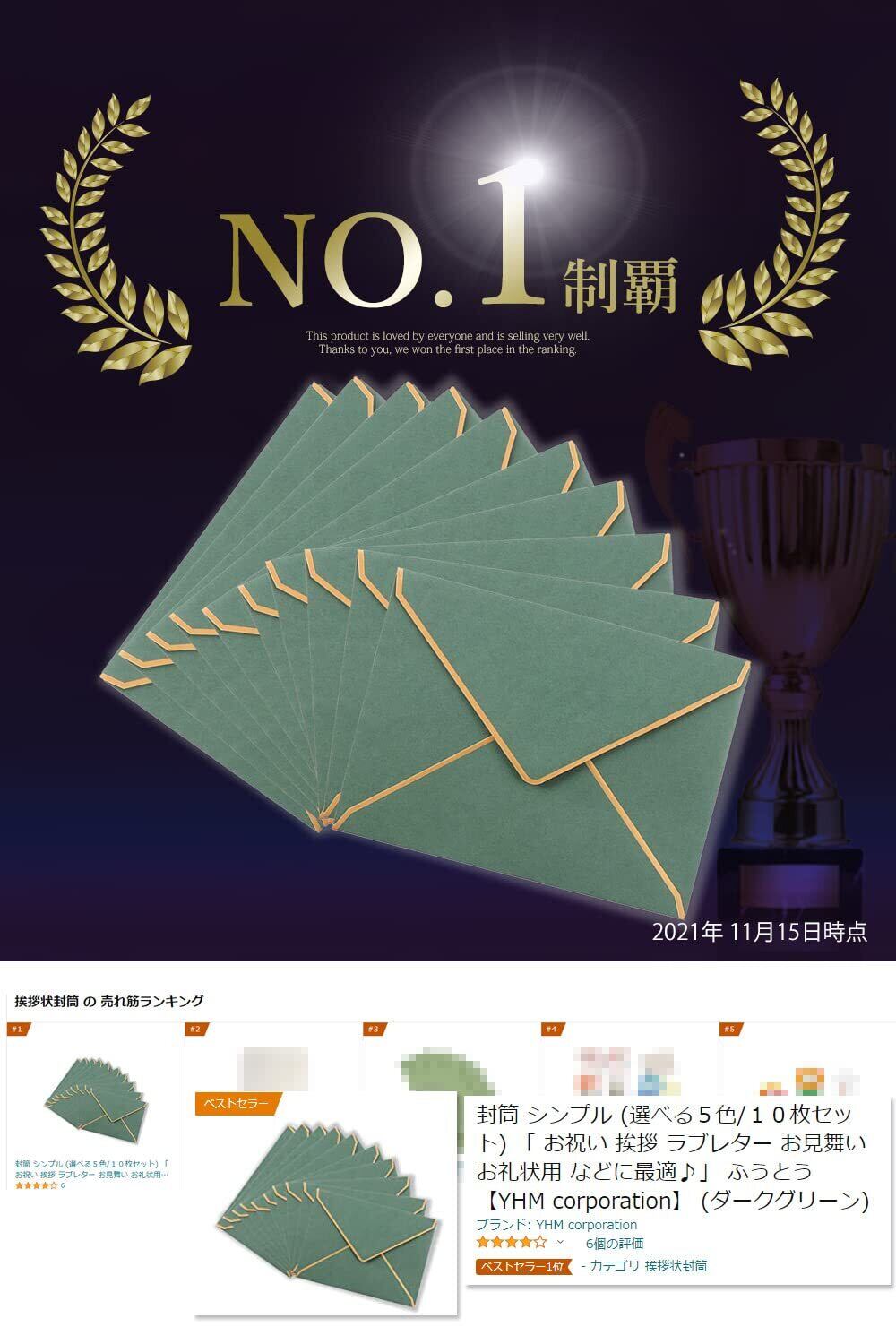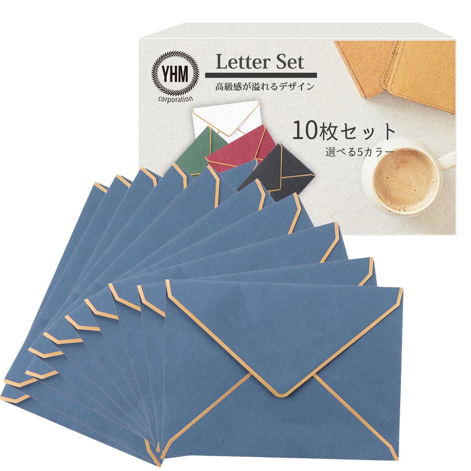 [YHM corporation] 封筒 シンプル (選べる5色/10枚セット) 「 お祝い 挨拶 ラブレター お見舞い お礼状用 などに最適」 ふうとう (ネイビー)