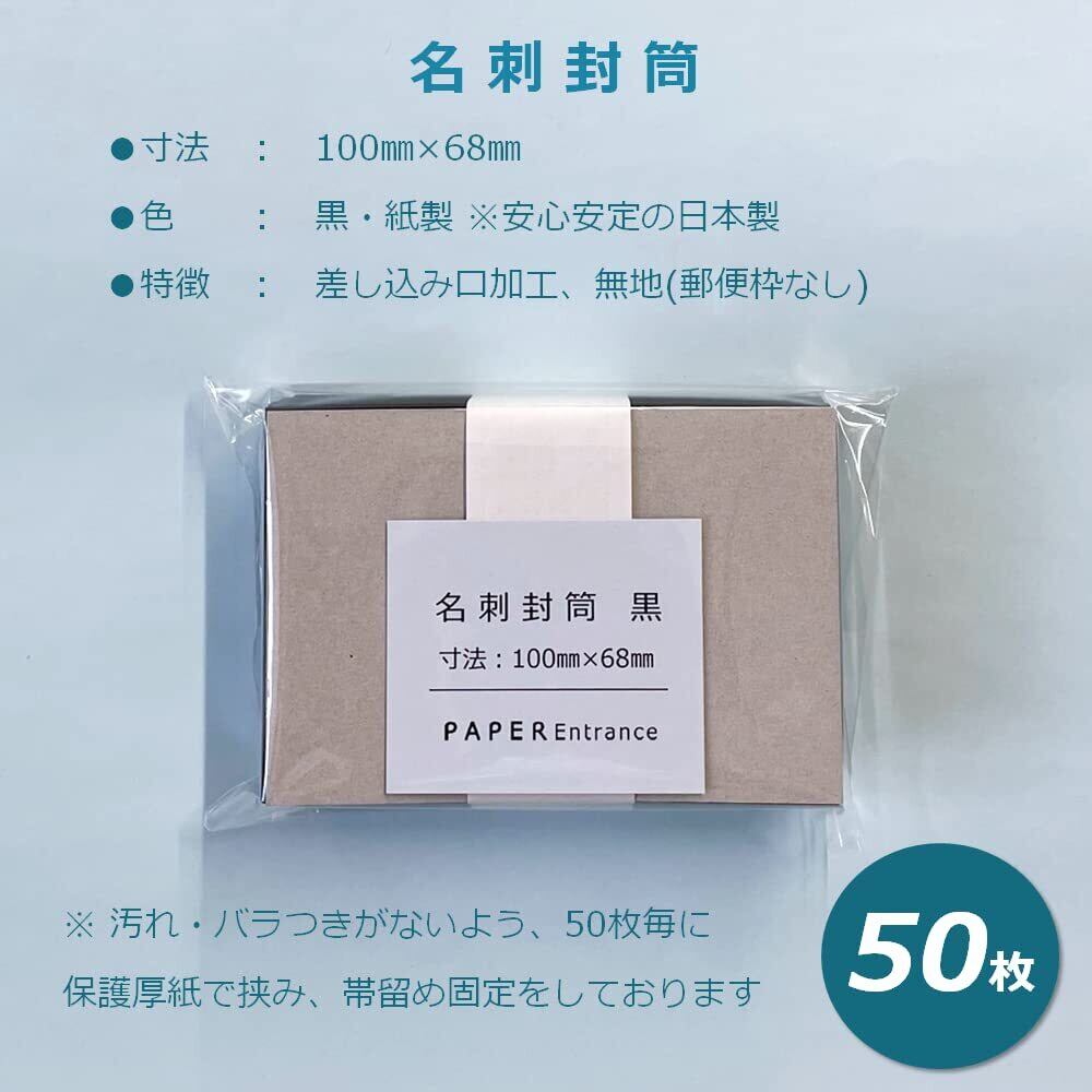 【新着商品】ペーパーエントランス 名刺封筒 ミニ 洋封筒 黒 100×68mm 50枚 メッセージカード 便箋 55122