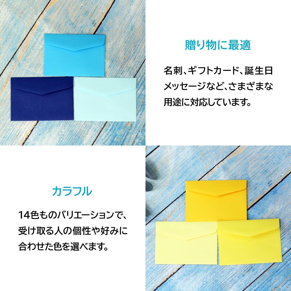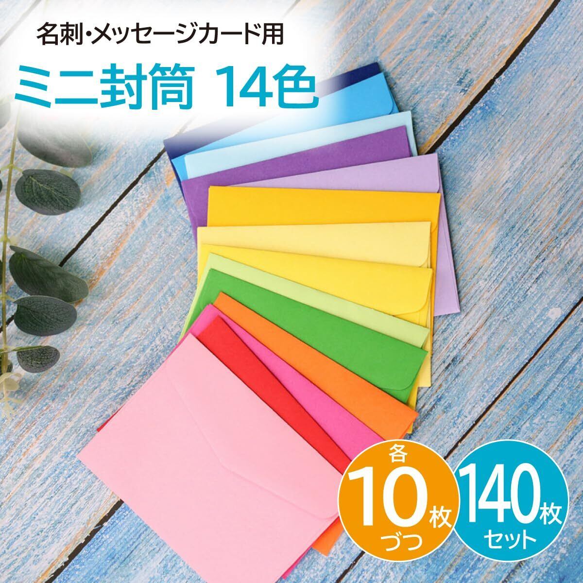 ENN LLC ミニ封筒 10.5cm×7cm 名刺・メッセージカード用 14色 140枚セット